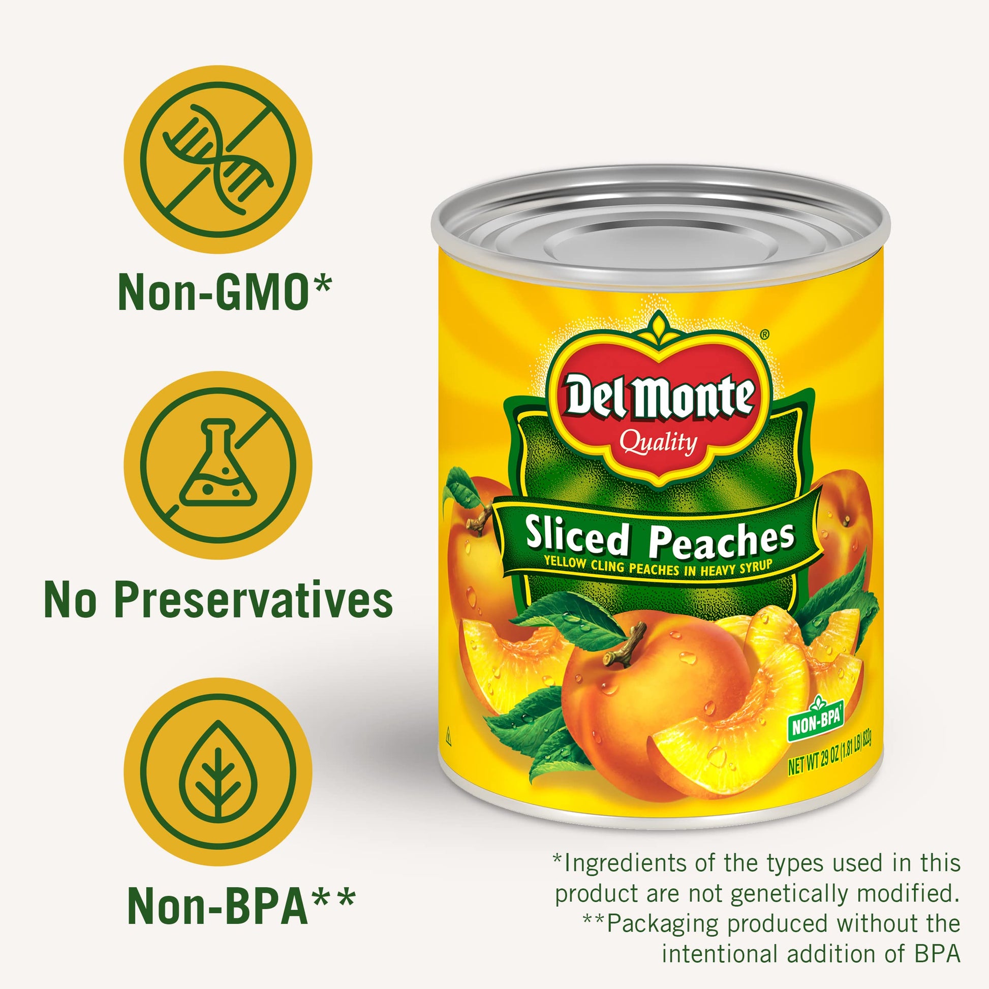 - Q: Are there any artificial preservatives in Del Monte canned peaches? A: No, Del Monte Yellow Cling Peach Halves do not contain artificial preservatives, providing a wholesome fruit option.