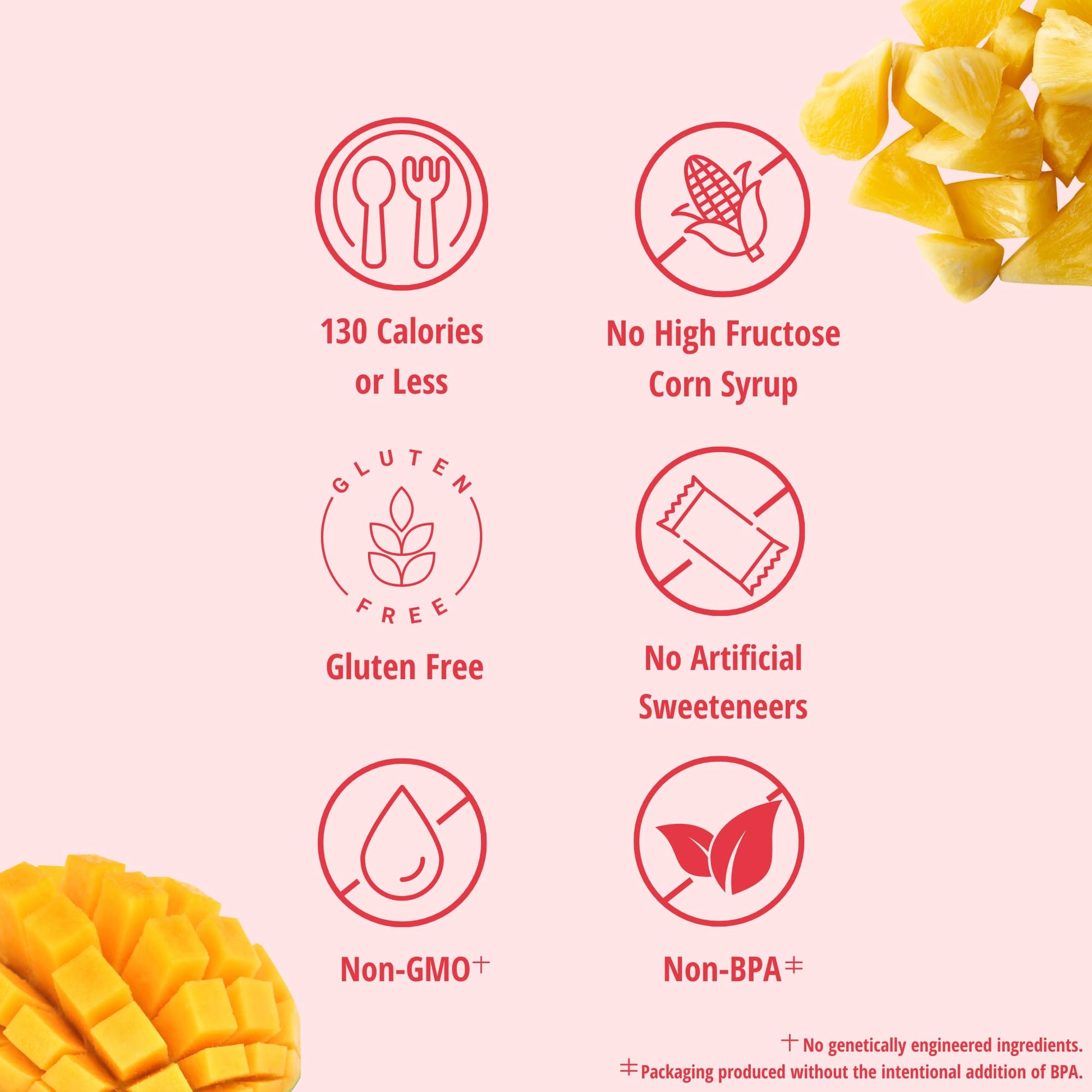 Del Monte Fruit Refreshers Pineapple Mango Fruit Cup Snacks Are Packed With Delicious, Wholesome Fruit In Tasty Prickly Pear-Flavored Fruit Water For A Snack You Can Feel Good About. These Bite-Sized Fruit Pieces Are Conveniently Packaged In Easy-To-Open Individual Cups For A Quick On The Go Snack. Each Del Monte Fruit Cup Contains No Artificial Flavors Or Artificial Sweeteners And No High-Fructose Corn Syrup For A Nourishing Snack The Whole Family Will Love. Easily Pack These Fruit Cups In A School Lunchbox Or Offer Them As A Quick After-School Snack. Each Fruit Cup Is Non-Gmo* And Comes In Non-Bpa** Packaging With An Easy Peel-Off Lid For A Tasty Fruit Snack You Can Say Yes To Every Day. Bring Goodness To Your Family With Del Monte Fruit Refreshers Pineapple And Mango Fruit Cup Snacks. *Ingredients Of The Types Used In This Product Are Not Genetically Modified. **Packaging Produced Without The Intentional Addition Of Bpa.
