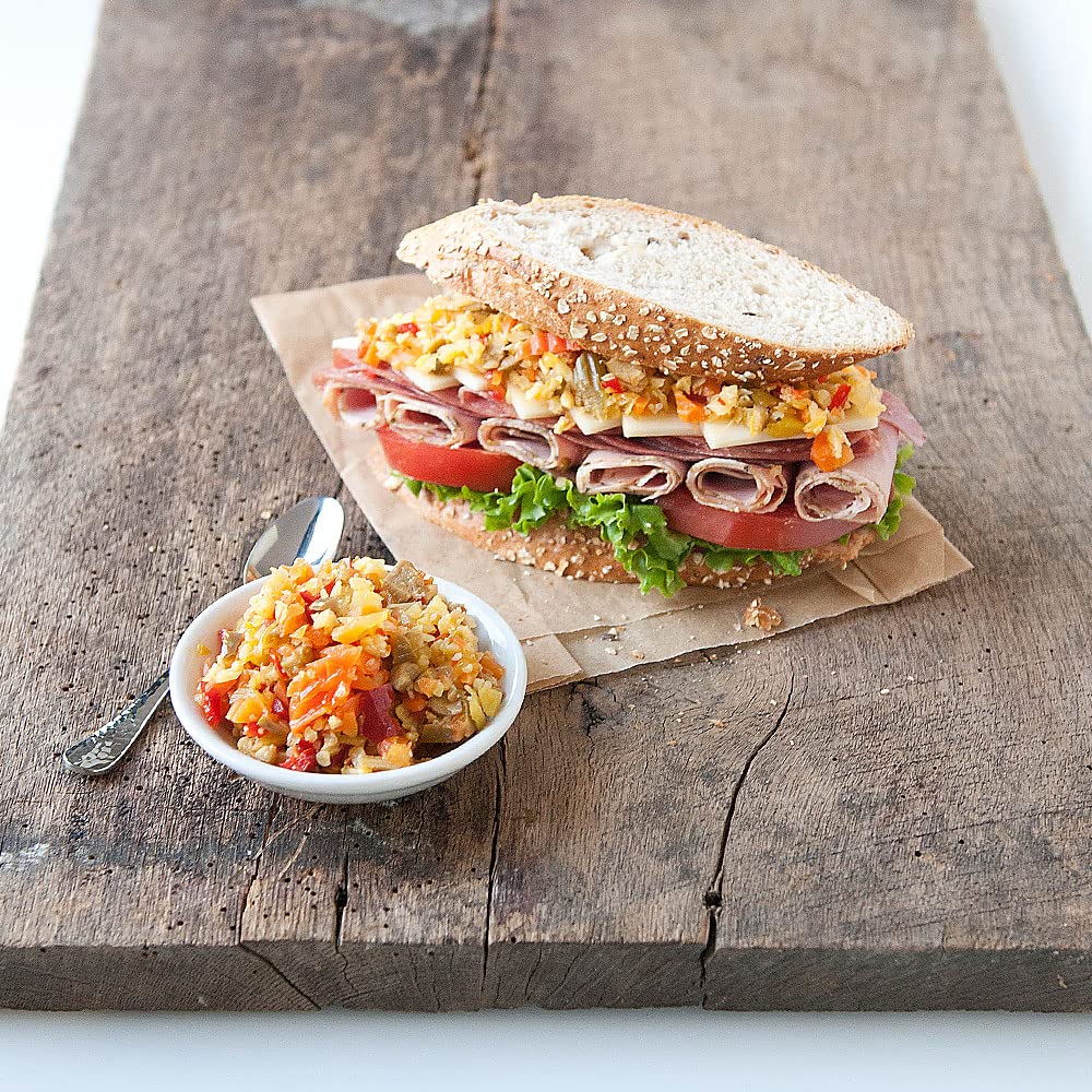 DeLallo Mild Giardiniera is a crunchy and colorful mix of crisp pickled veggies featuring carrots, celery, cauliflower florets, pepperoncini and sweet strips of red pepper. This classic Italian-style antipasto boasts an irresistibly crunchy, tangy vinegar bite perfect for entertaining.
