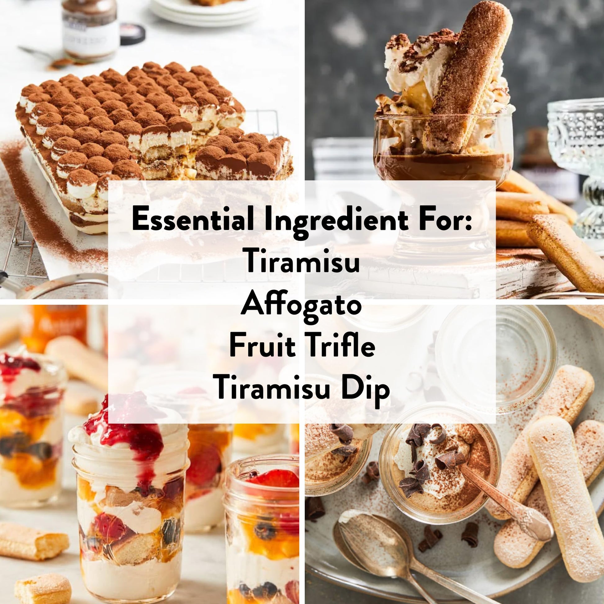 Q: What are Savoiardi Lady Fingers and how are they used?A: Savoiardi Lady Fingers are light, sugar-crusted sponge cookies that are traditionally used in desserts like tiramisu. They can also be enjoyed with gelato, espresso, or pudding, making them versatile for various sweet dishes.