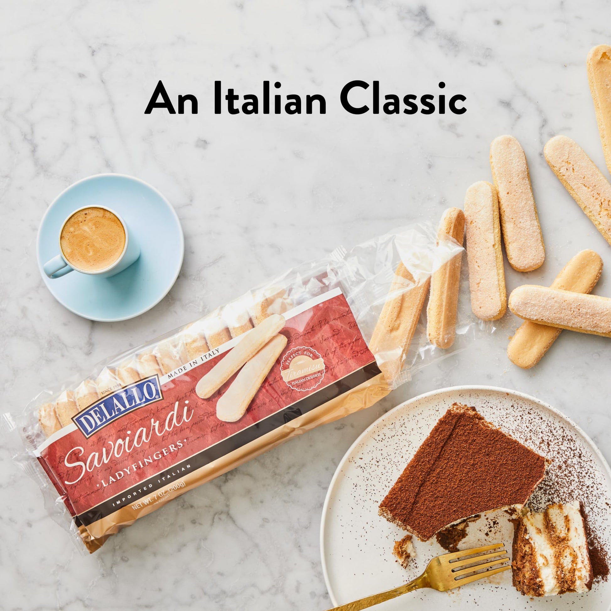 Q: Is there a recipe included for making tiramisu with DeLallo Savoiardi?A: Yes, the package includes a classic tiramisu recipe specifically designed for an 8”x8” pan, using one 7oz package of Savoiardi Lady Fingers.