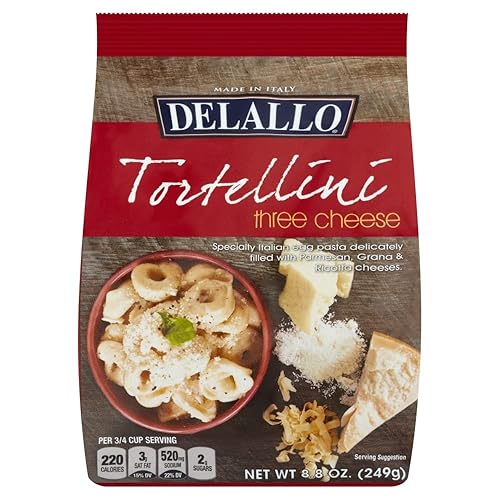 Delallo Tortellini 3 cheese Filled Pasta Is A classic Italian Stuffed Egg Pasta Made From Durum Wheat Semolina. The Pasta Is Folded Around A Savory, Nutty Blend Of Fine Italian cheeses Then Pinched Into Small Rings To Make The classic Tortellini Shape. These Tortellini Rings Are good In Broth-Based Soups. Each Bag contains 8.8 Oz. Of Tortellini. See Nutrition Facts Panel For Allergens.