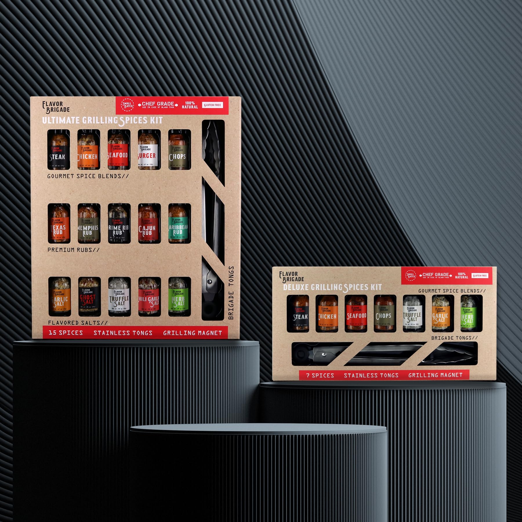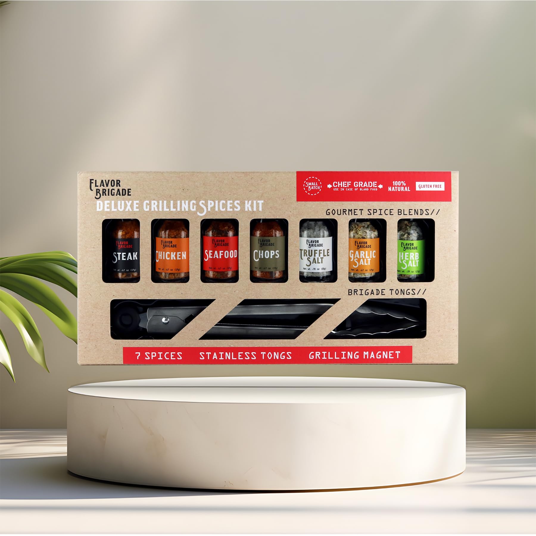Q: What types of spices are included in the Deluxe Grilling Gift for Men?A: The Deluxe Grilling Gift includes seven gourmet quality spice blends, perfect for grilling, BBQ, smoking, and pan frying.