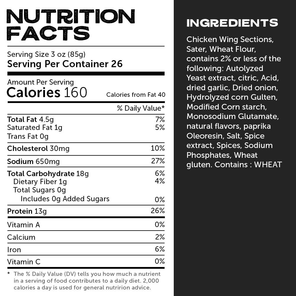 - VERSATILE HEATING OPTIONS: Enjoy these juicy wings heated in the microwave, baked, or grilled, maintaining tenderness and deliciousness.