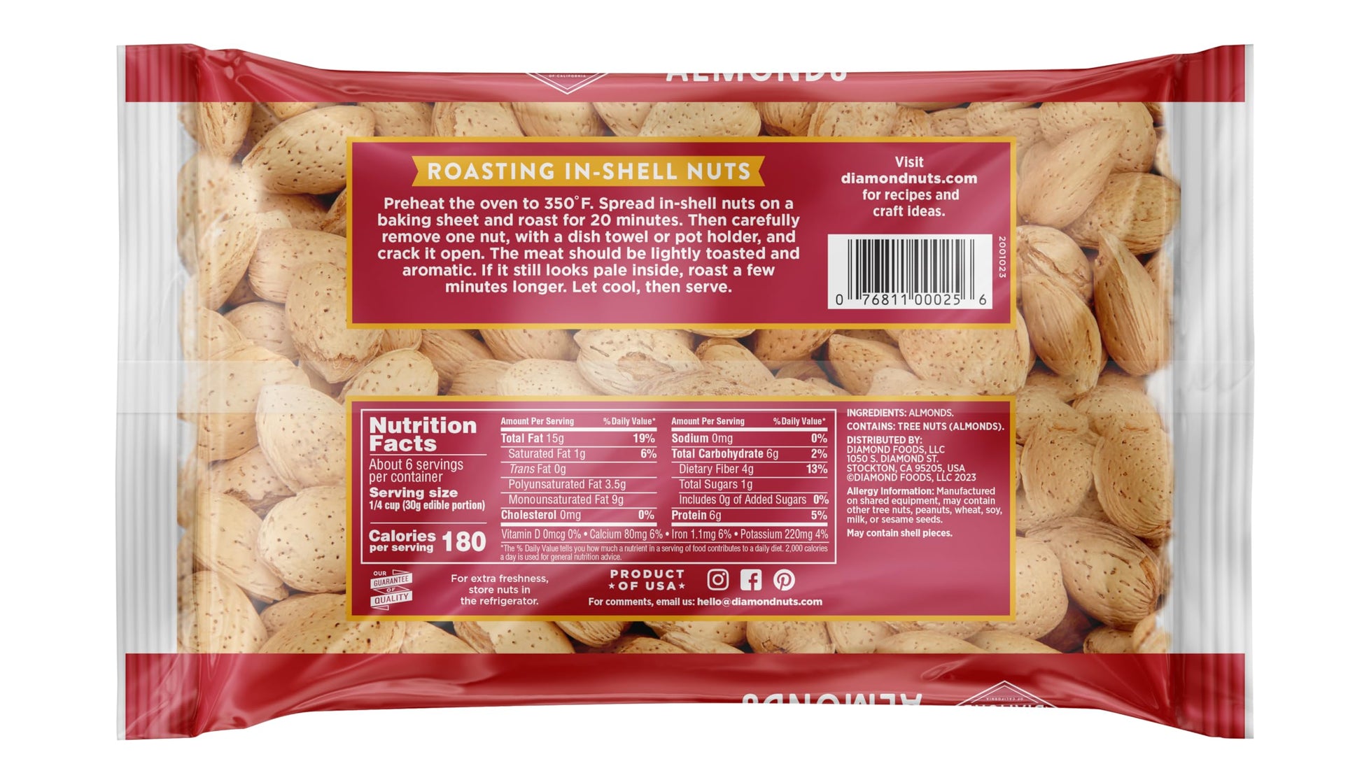 Savor The Delicious And Wholesome Goodness Of Diamond Of California Almonds. As One Of America'S Favorite Nuts, Almonds Have Become A Staple In The World Of Snacks And Food. We Hand-Select Trusted Almond Growers Committed To Delivering High-Quality Products. Harvested At California Farms And Carefully Transported To Our Facility, Our Almonds Are Known For Their Distinct Flavor And Irresistible Crunch. Whether Enjoyed In Their Shell, Shelled, Slivered, Or Sliced, They Are A Delightful Addition To Salads, Side Dishes, Desserts, And A Healthy Diet. Packed With Protein, Healthy Fats, And Fiber, These Unsalted Almonds Are Low In Saturated Fat And Cholesterol, Supporting Heart Health. Perfect For Health-Conscious Individuals, Vegans, Vegetarians, Food Enthusiasts, And Individuals With Dietary Restrictions, Our Pure And Natural Almonds Are A Flavorful, Nourishing Snack Option. Trust Diamond Of California For The Highest Quality And Best-Tasting Nuts, Adding A Touch Of Wholesomeness To Your Snacking Experience.