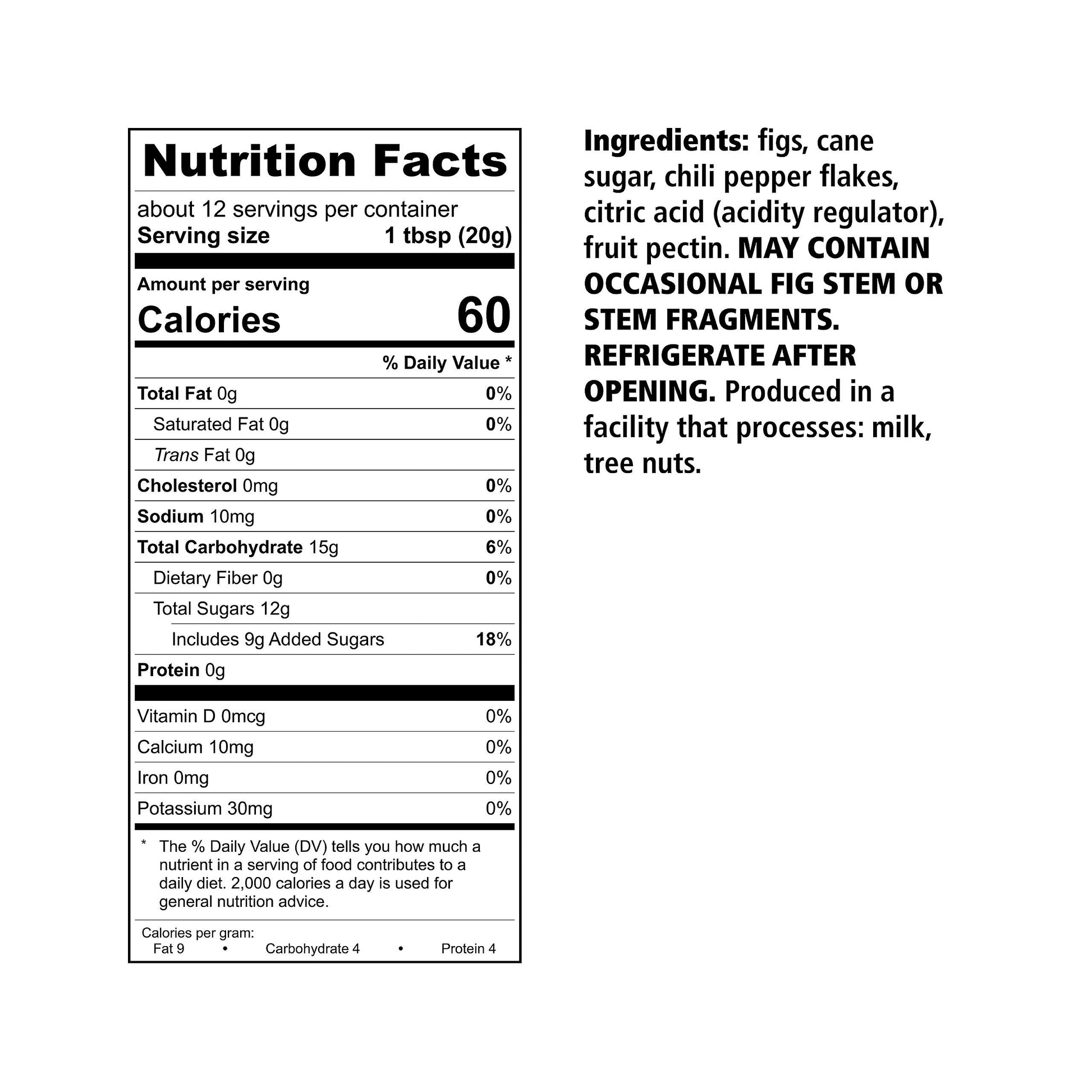 Q: How can I use DIVINA Chili Fig Spread in recipes?A: You can use this versatile spread as a glaze for meats and vegetables before roasting or grilling. It's also delicious on a pressed veggie sandwich with butternut squash and goat cheese, or as a topping on pizza with gorgonzola and prosciutto.