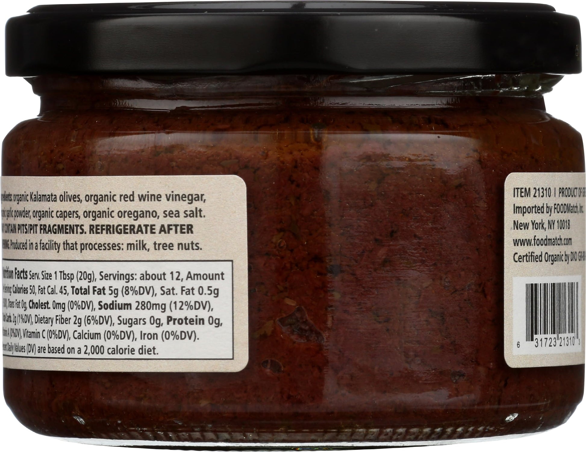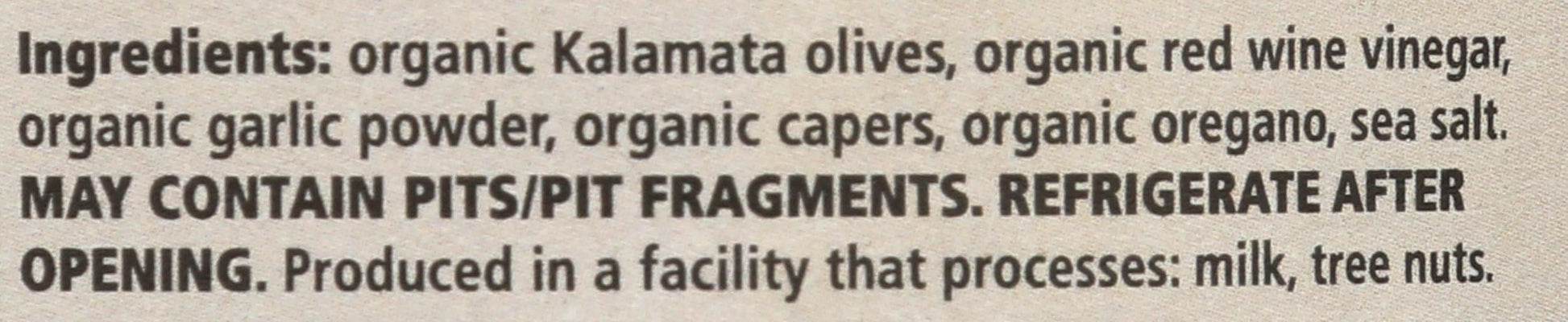 Q: What ingredients are included in Divina Organic Kalamata Olive Spread?A: Divina Organic Kalamata Olive Spread is made from authentic Greek Kalamata olives, garlic, herbs, and spices, providing a rich and savory flavor.