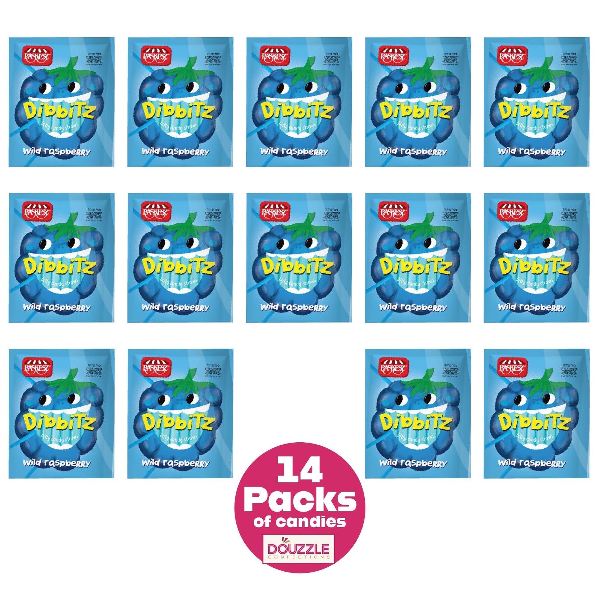 Q: What is the packaging size of DOUzzle Dibbitz candies?A: The DOUzzle Dibbitz Raspberry candy sticks come in a pack of 1, containing a total of 14 individually wrapped candies.