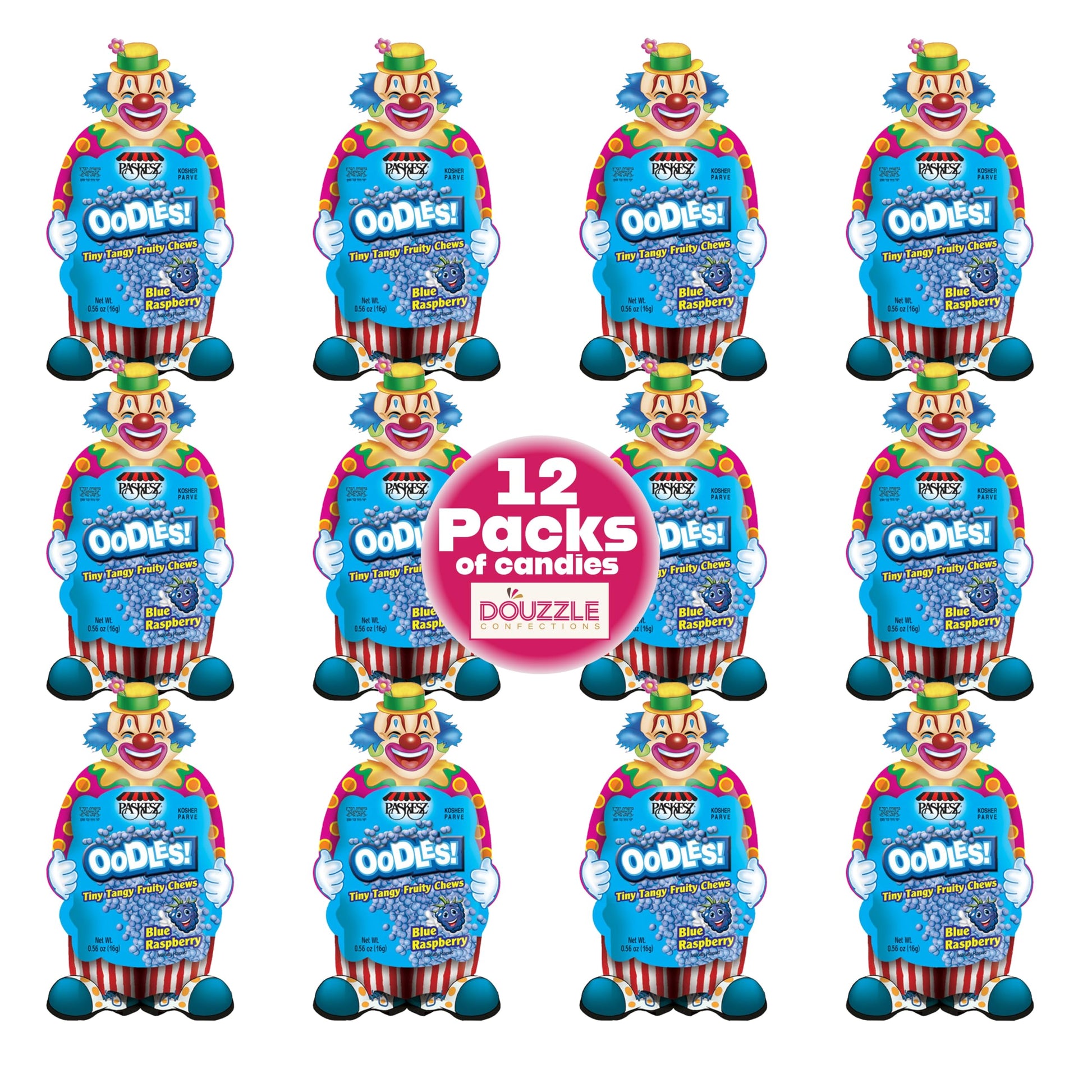 Douzzle Oodles Clown Shaped, Blue Raspberry Tiny Tangy Chews (12 Count, Pack Of 1) Individually Wrapped Candies, Birthday Party Favors, Goodie Bags Stuffers, Pinata Filler - Kosher Parve
