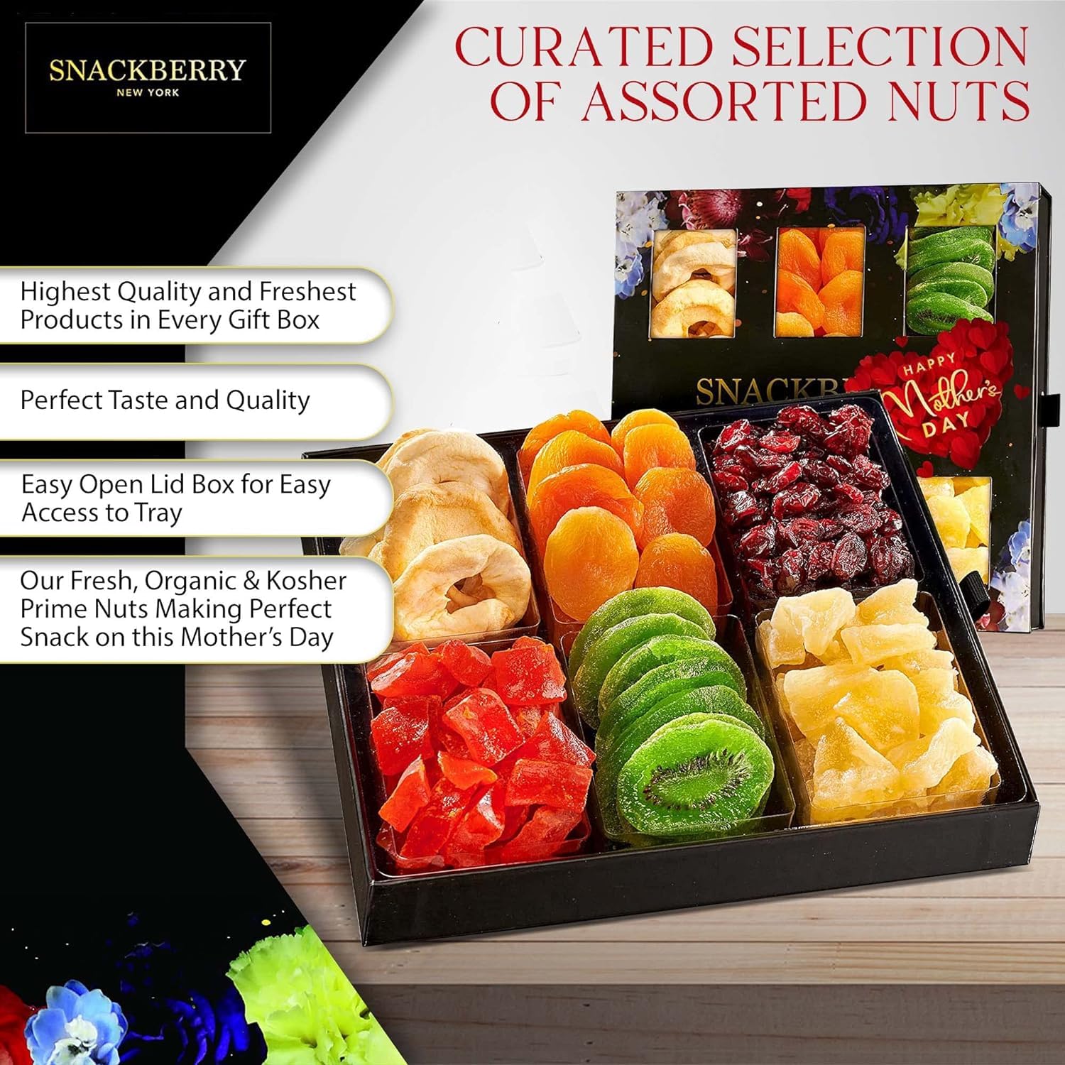 Our Sectional Party Tray Is Filled To The Brim With Healthy Goodies. The Lidded Tray Is Divided Into 6 Compartments With 6 Different Items For Your Convenience. Each Includes A Different Mouthwatering Dried Fruit From Our Assortment: Dried Apple Rings, Turkish Apricots, Craisins, Pappaya Chunks, Dried Kiwi, And Dried Pineapple Chunks. Hen Gifting Yourself, A Loved One, Or A Friend, This High-End Eye-Catching Gourmet Food Gift Basket Will Surely Complement And Enhance All Celebrations. Whether Celebrating Dad, Mom, Girlfriend, A Birthday, Or Saying Thank You, Gift With Absolute Confidence! When You Think Youve Found The Perfect Gift, Its Expensive. When You Find An Affordable One, You Dont Like It As Much. Lucky For You Our Nut Gift Box Is Both High-End And Affordable, Exactly What You Were Looking For! Is Nuts Gift Box Is Cleverly Designed As A Drawer Compartment That Pulls Out Easily And Windows That Display The Beautiful Items Inside. It Makes A Beautiful Table Decoration! At Snackberry We Pride Ourselves In Our Commitment To Quality And Freshness In Every Gift Box. The Assorted Sweet And Savory Nuts Are Individually Sourced From The Finest Artisanal Producers Around The Country And Boast The Perfect Texture, Quality, And Taste. These Prime Nuts Are Fresh, Organic, And Kosher. This Gift Says I Care About Your Well-Being! Nuts Are A Healthy Snack Packed With All-Natural Essential Fibers, Vitamins, Minerals, Protein, And Healthy Fats.