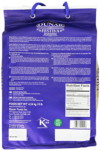Q: Is Dunar Festiva Pusa Basmati Rice suitable for special diets?A: Yes, Dunar Festiva Pusa Basmati Rice is kosher and GMO-free, making it suitable for various dietary preferences and health-conscious consumers.