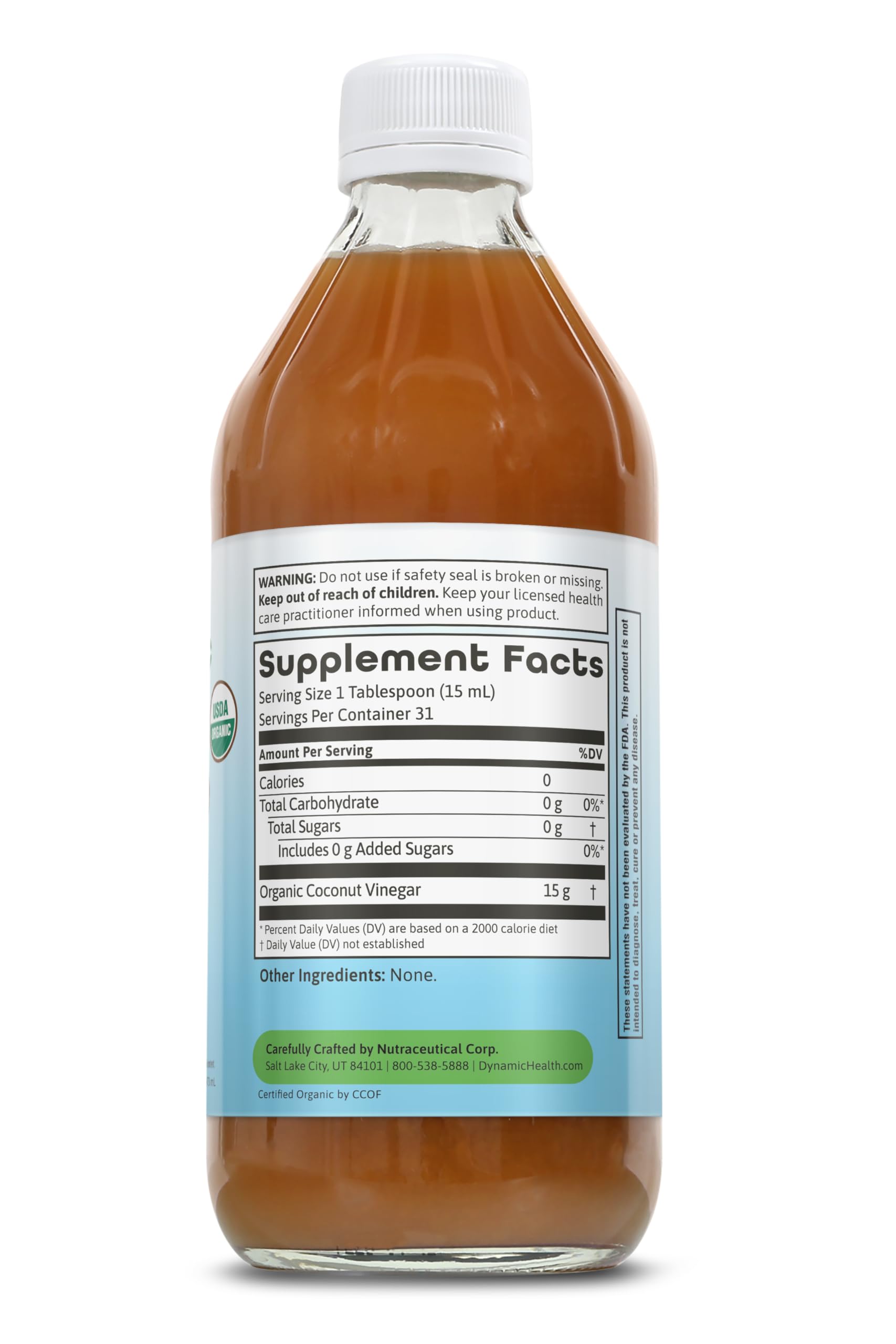 - Q: What are the health benefits of Dynamic Health Coconut Vinegar w Mother Organic? A: Dynamic Health Coconut Vinegar is known for its energizing properties and is made from organic coconuts, which may help with digestion, support weight management, and provide a natural source of antioxidants.