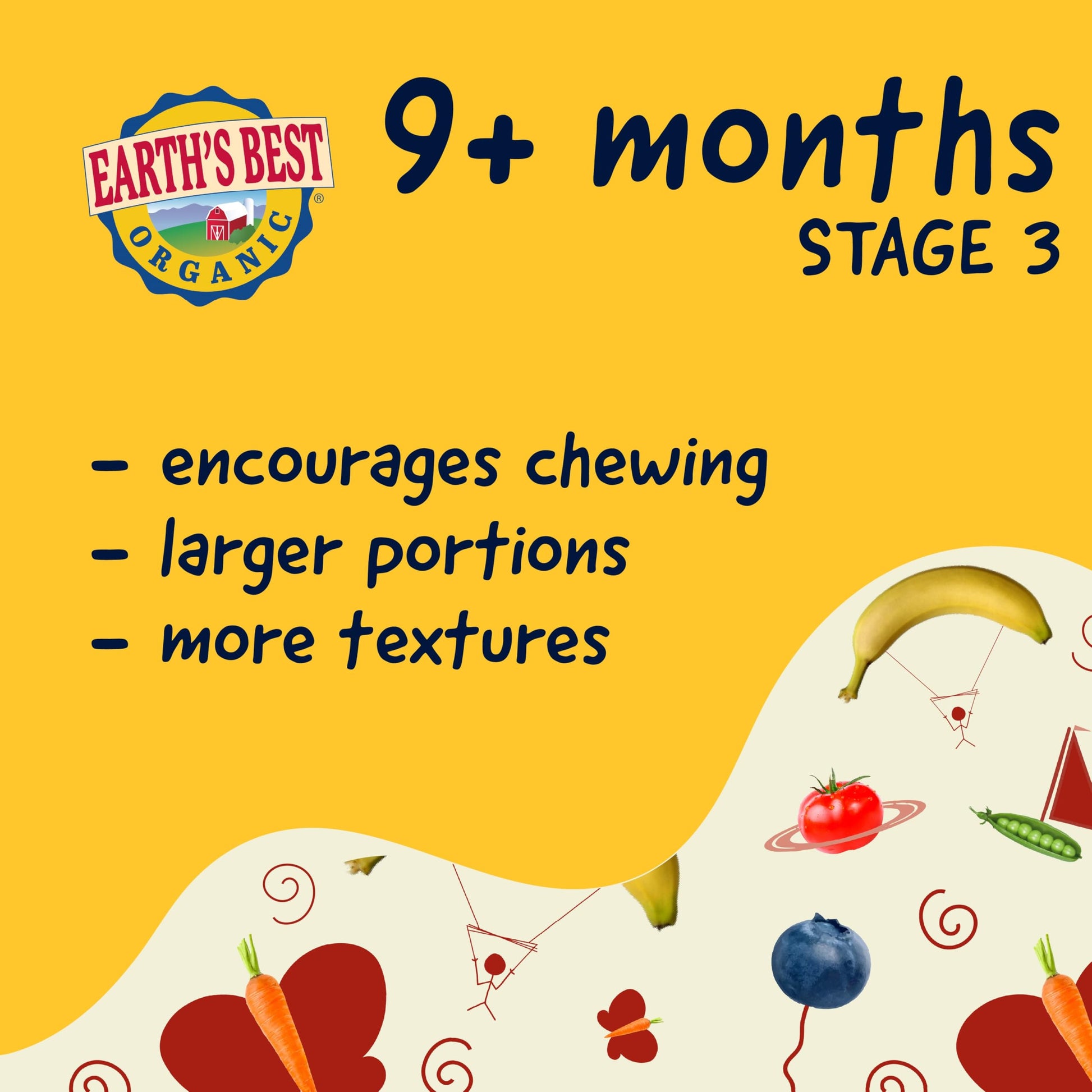 Q: What age is Earth's Best Organic Baby Food Pouches suitable for?A: Earth's Best Organic Baby Food Pouches are designed for babies 9 months and up, making them ideal for introducing new textures and flavors as your little one grows.