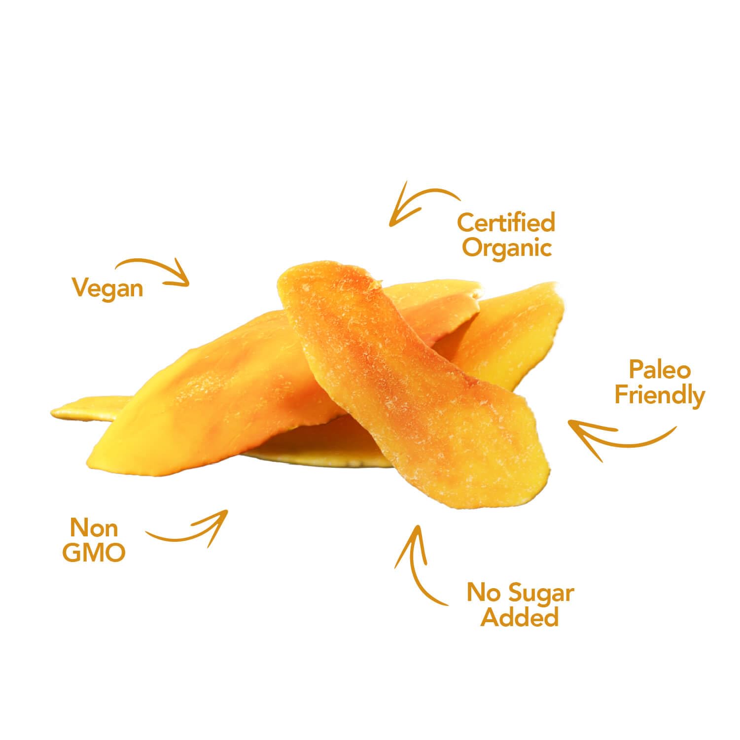 Q: Do these dried mangoes contain any added sugars or preservatives?A: No, our dried mangoes are made from pure organic mangoes with no added sugar, preservatives, or unhealthy ingredients.