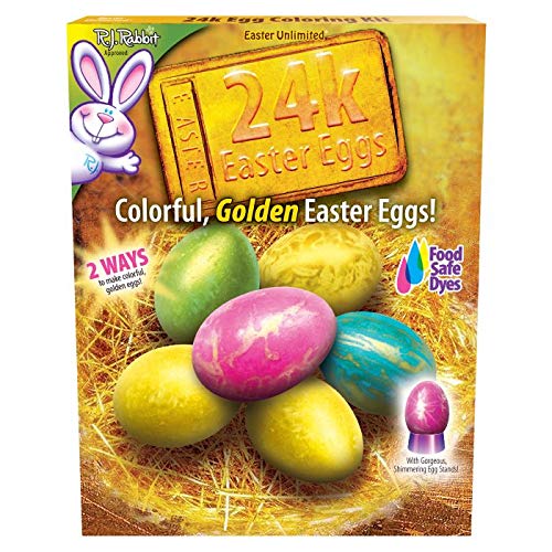 Q: What is included in the Easter Unlimited 24 Karat Easter Egg Coloring Kit?A: The Easter Unlimited 24 Karat Easter Egg Coloring Kit includes Gold Glaze (0.16 oz), 5 Egg Coloring Tablets, 3 Sponges, a Decorating Tray, and an Egg Dipper, providing everything you need for creative egg decorating.