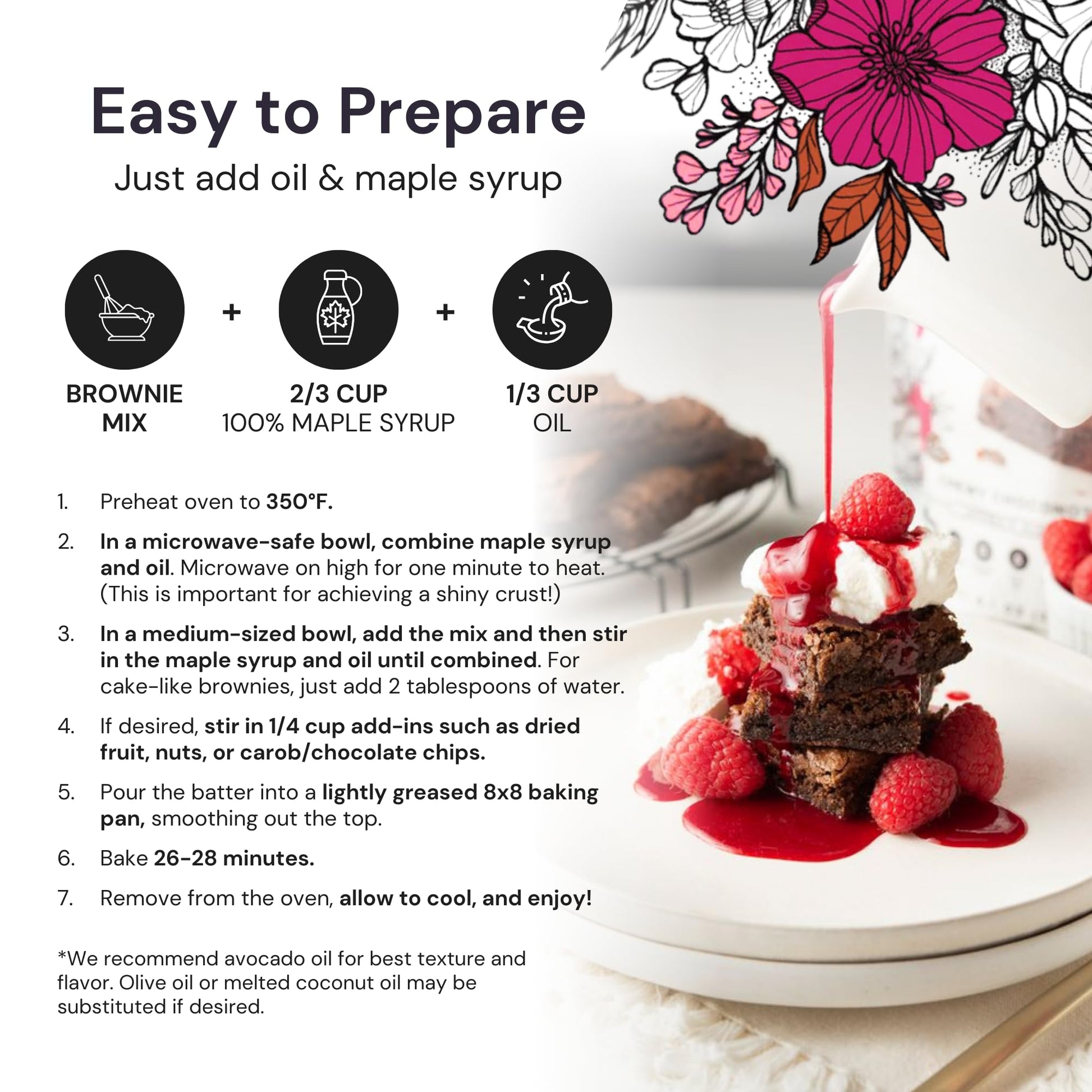 - Versatile Baking Options: Create gooey brownies or enhance your baking with add-ins like chocolate chips, carob chips, or nut butters.