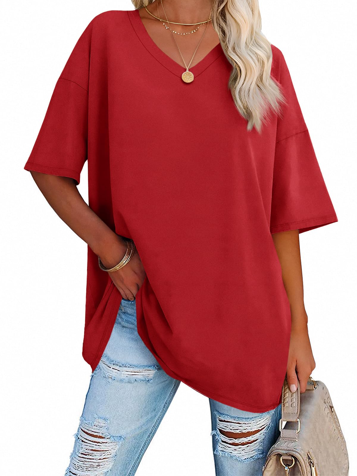 Ebifin Womens Oversized T Shirts Tees Half Sleeve V Neck Comfy Cozy Cotton Tunic Tops