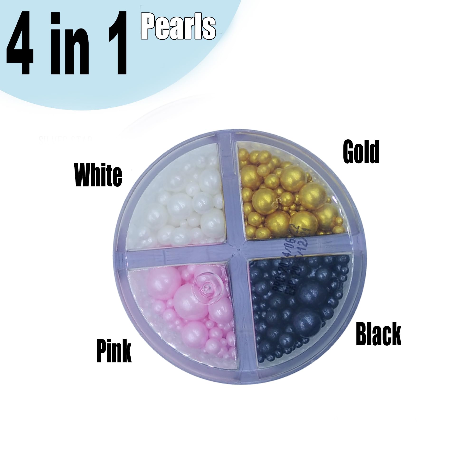 Q: What are Edible 4 in 1 Pearls Sugar Sprinkles made of?A: The Edible 4 in 1 Pearls Sugar Sprinkles are made from sugar and food-grade colorings. They are designed for decorative purposes, adding a charming touch to cakes and desserts.