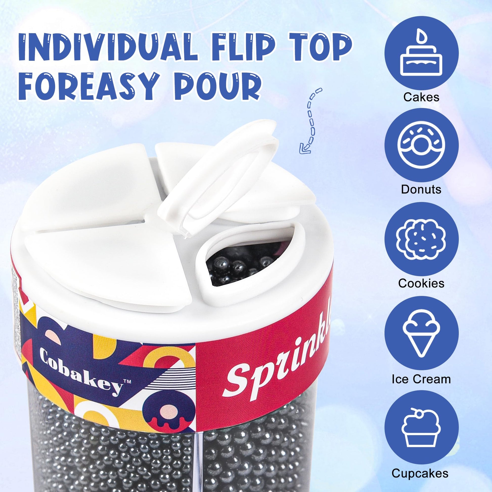 - Q: Do I need to refrigerate the sprinkles after opening? A: No, the Edible Black Pearl Sugar Sprinkles do not need to be refrigerated. They come with a freshness seal in the flip-top lid to keep them fresh and delicious for an extended period, ensuring every sprinkle remains as tasty as the first.