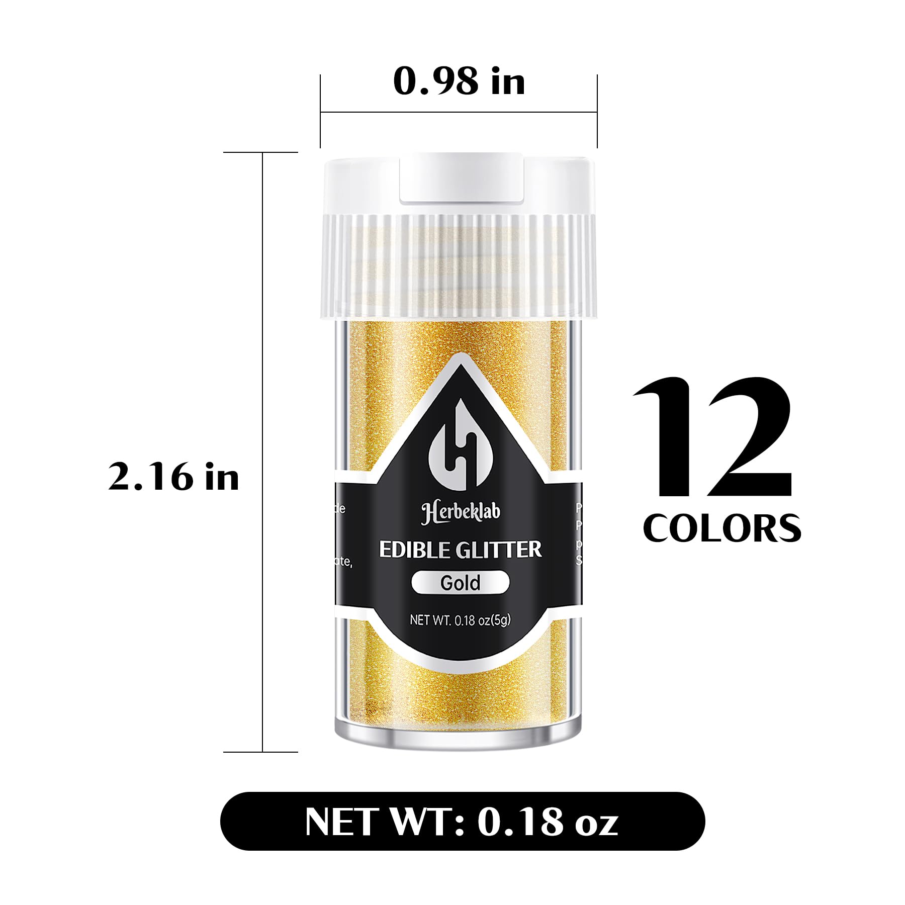Herbeklab Edible Glitter 12 Colors Luster Dust Edible Food Glitter For Cocktails Cakes Decorating Drinks Edible Shimmer Powder Glitter Sprinkles For Halloween Chocolate Candy Cookies 5G/Bottle