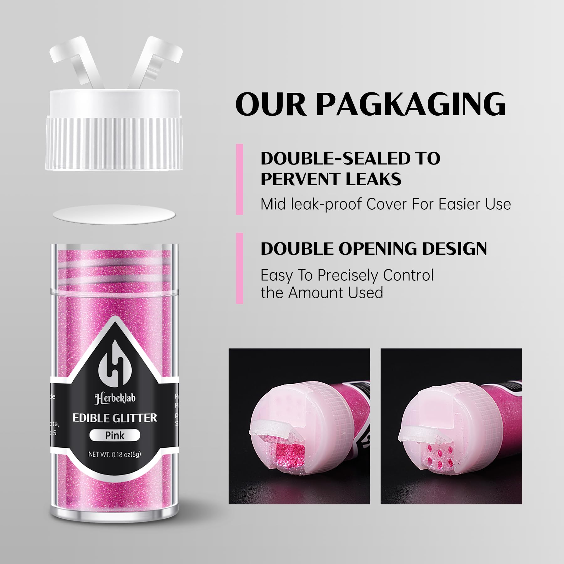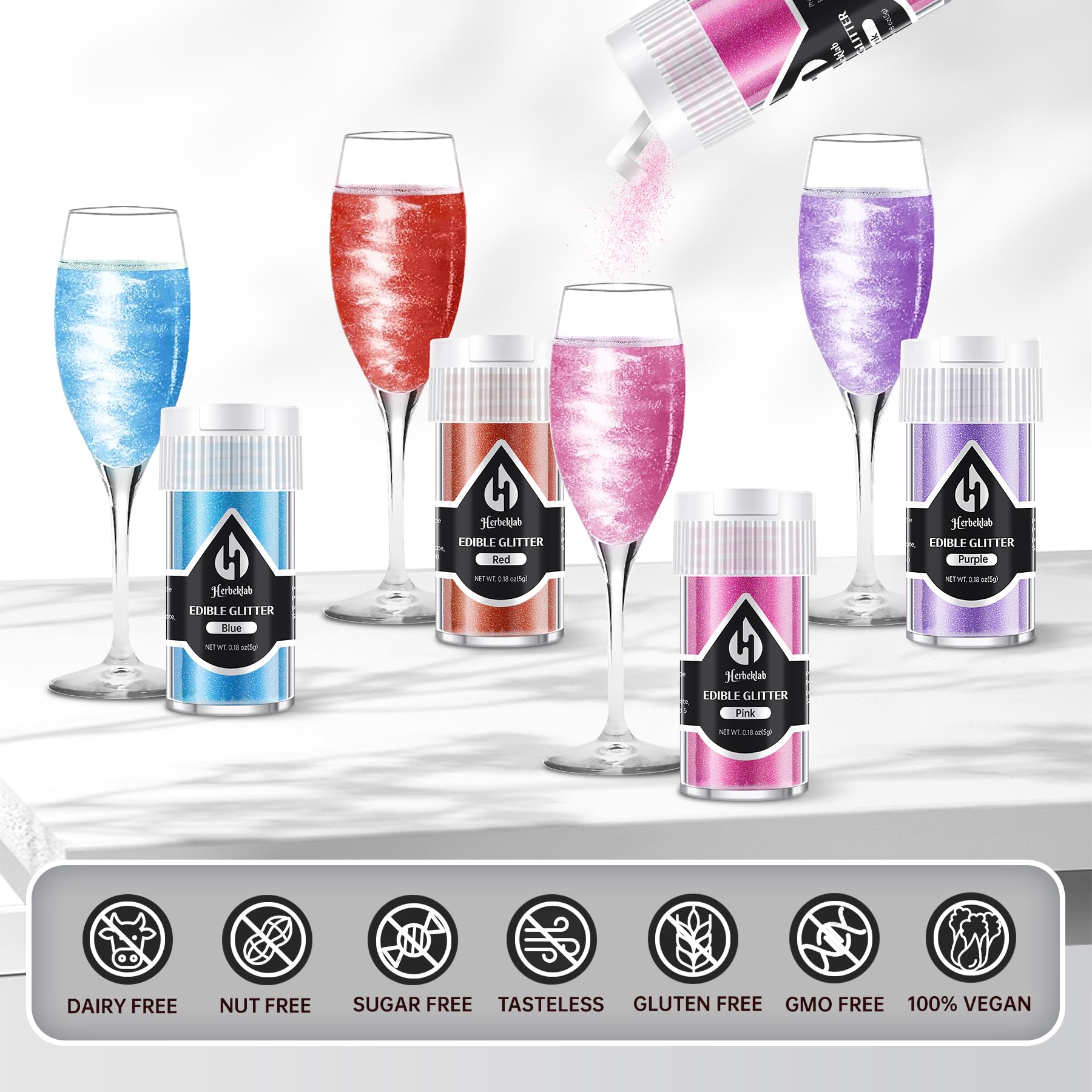 - Q: What colors are available in the edible glitter set? A: The Herbeklab edible glitter set includes six vibrant colors: pink, purple, red, blue, green, and a dreamlike violet, allowing you to choose the perfect shade to complement your culinary creations.