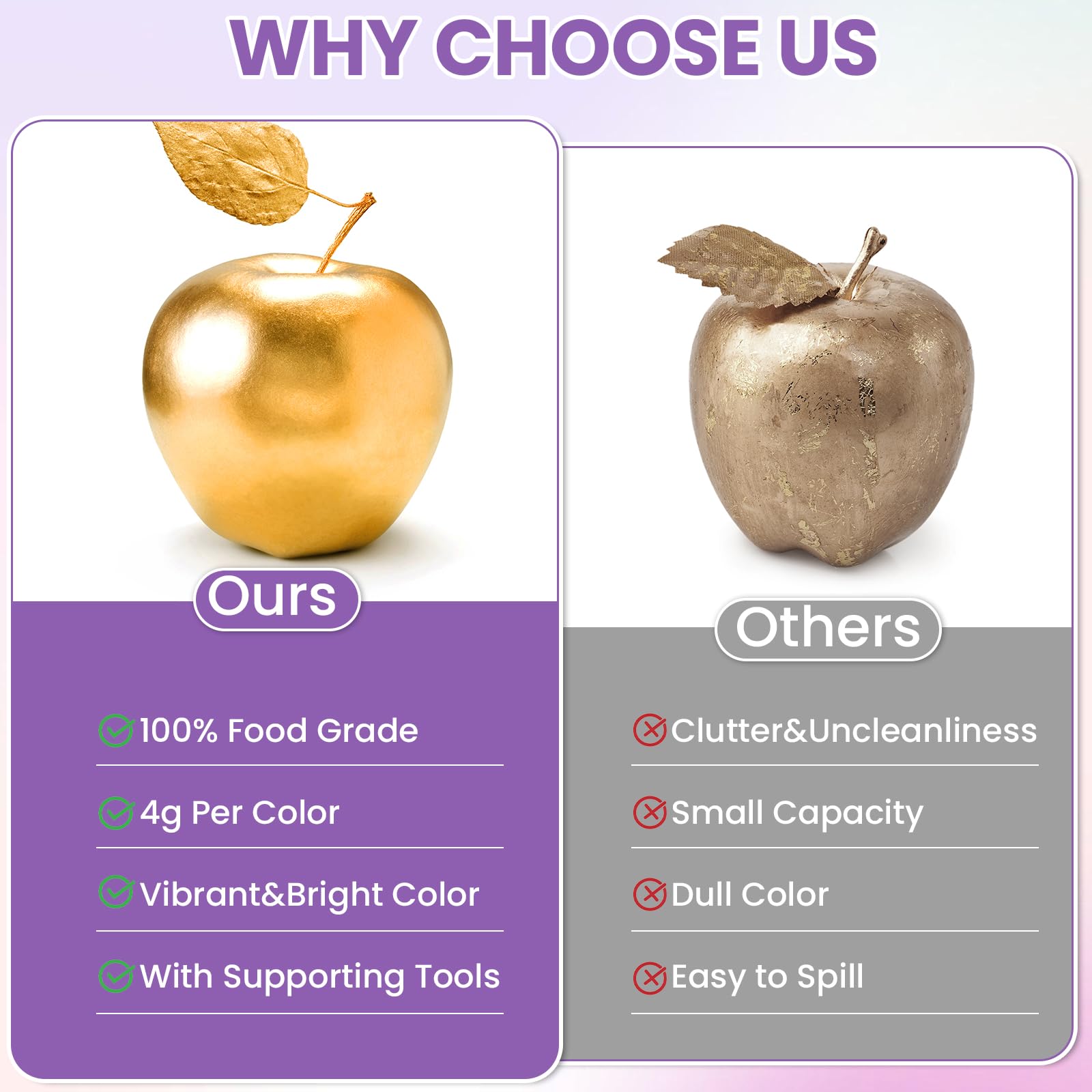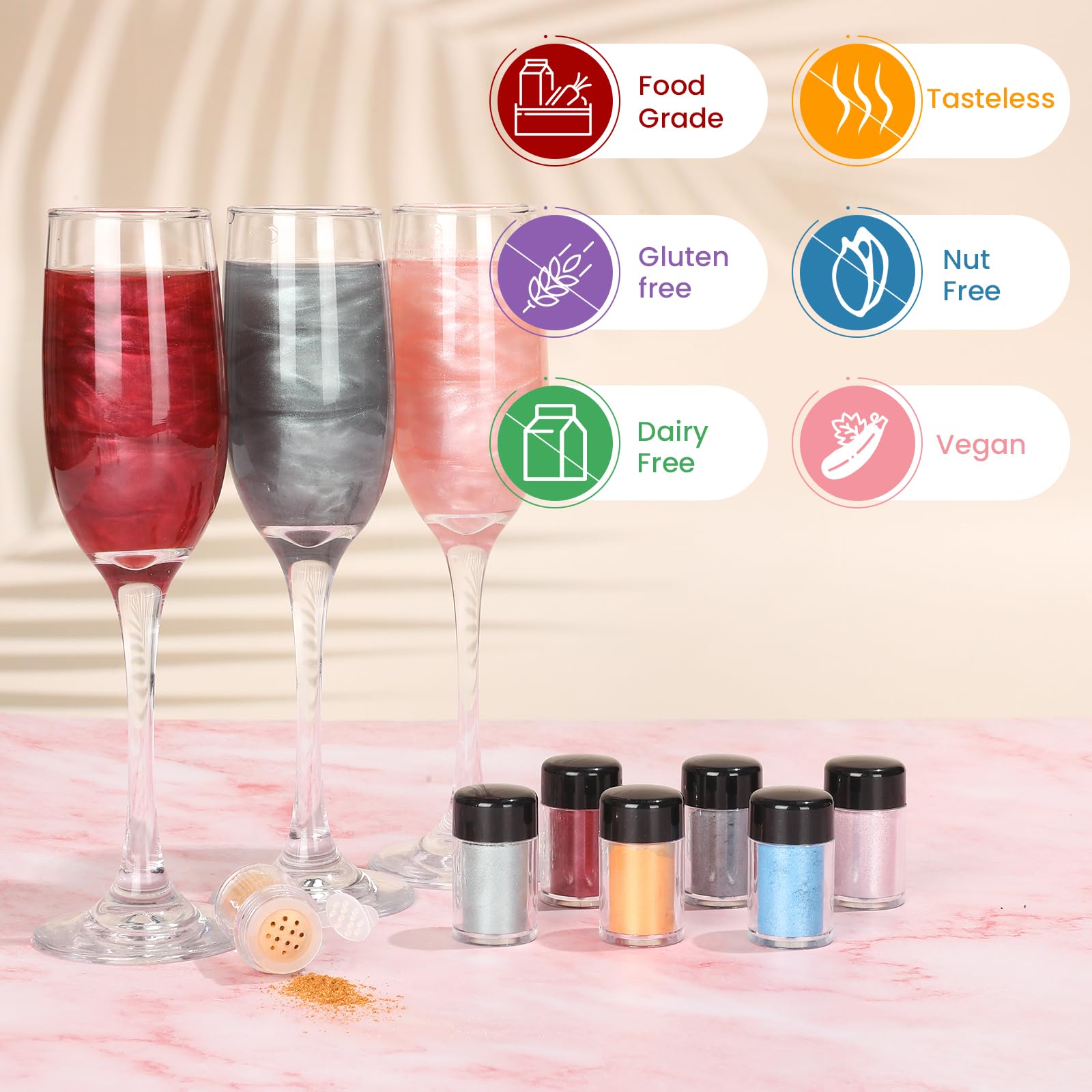Q: Is the edible glitter safe for everyone to use?A: Yes, the edible glitter is made from 100% food grade ingredients and is fat free, dairy free, gluten free, nut free, GMO free, and allergen free, making it safe for vegans and those with food allergies.