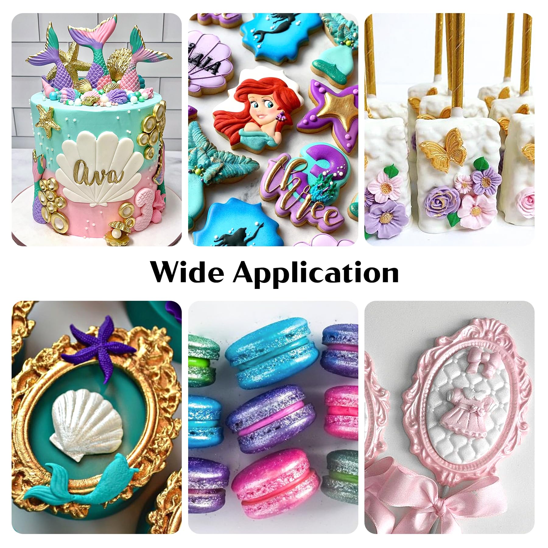 • Q: Can I use this edible paint on fondant and cookies? A: Yes, the Edible Glitter Paint is perfect for use on fondant, cookies, cakes, and a variety of baked goods. It adds a luxurious shimmer and metallic finish, making it an excellent choice for decorating items for special occasions such as birthdays, holidays, and weddings.