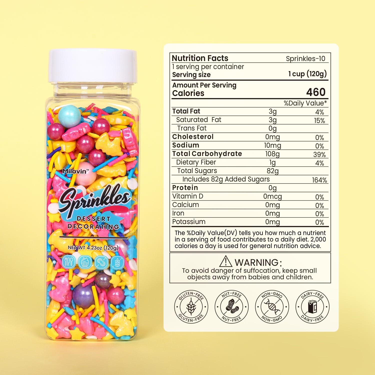 Q: What are Edible Unicorn Sprinkles made of?A: Edible Unicorn Sprinkles are made with food-grade ingredients that are gluten-free, nut-free, dairy-free, and non-GMO. They meet American food safety standards, ensuring they are safe for you and your family.