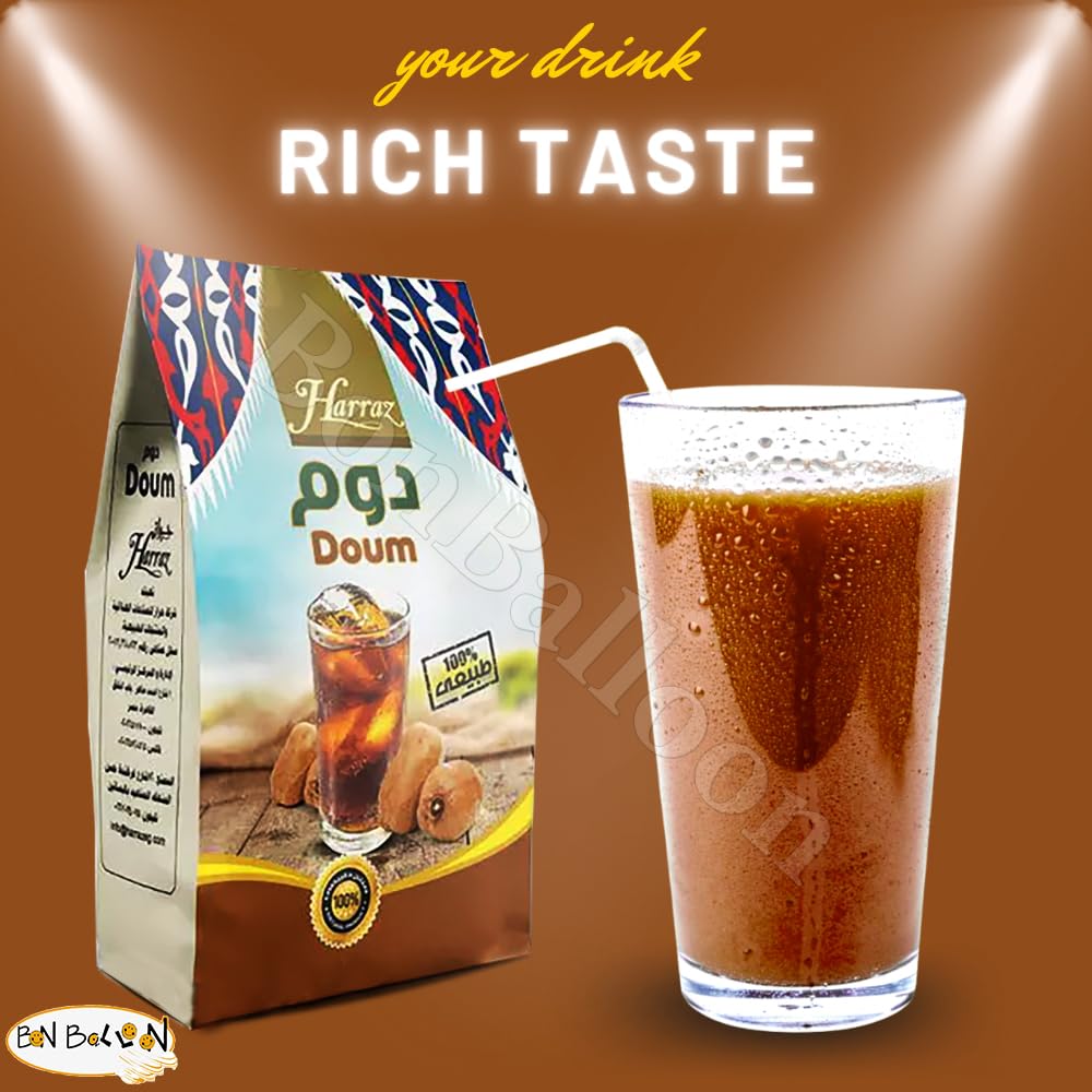 - Q: How do I prepare Dried Premium Doum Harraz tea? A: To prepare the tea, fill a jug with one and a half liters of water, add four tablespoons of Doum powder, heat it on the stove for ten minutes, then cool, strain, and sweeten to taste.
