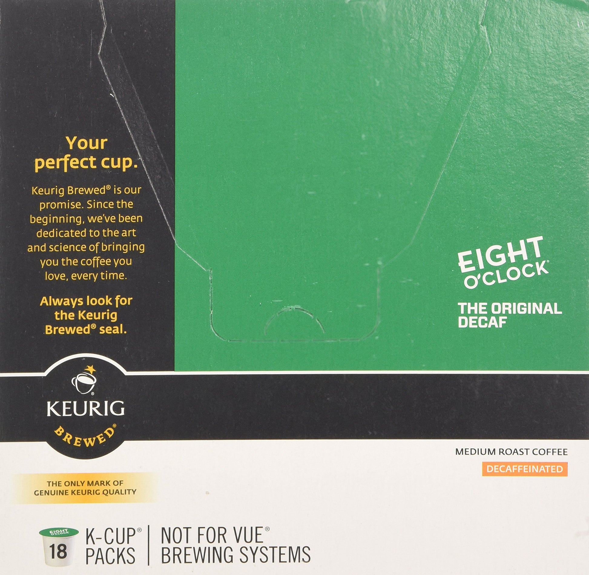 Includes Eight O'Clock Original Decaf Coffee Keurig K-Cups, 18 Count - Packaging May Vary. Please Note The Packaging Change: Due To A Recent Packaging Change, The Graphical Design Of The K-Cup Lids May Vary Slightly From Image. The Product Ingredients, Roast, Amount Of Grinds, Etc. Have Not Changed And Are Exactly The Same As This Product Has Always Been.