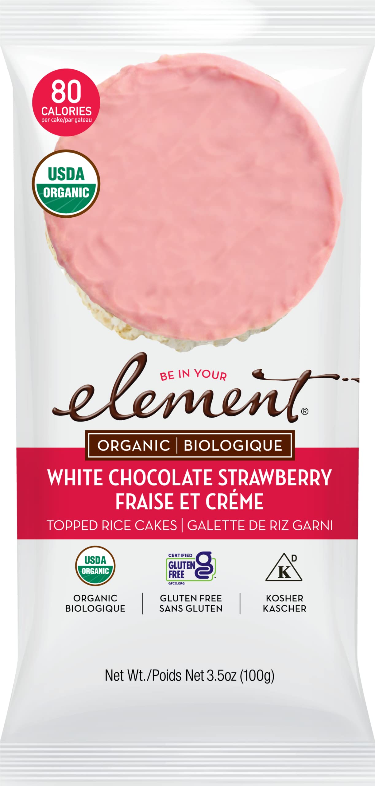 Q: What are the main ingredients in Element Snacks Organic Rice Cake Strawberry and Cream?A: Element Snacks Organic Rice Cake Strawberry and Cream is made with non-GMO ingredients and contains no hydrogenated or trans fats, high fructose corn syrup, yeast, or preservatives. The primary flavors are derived from natural strawberry and cream components.