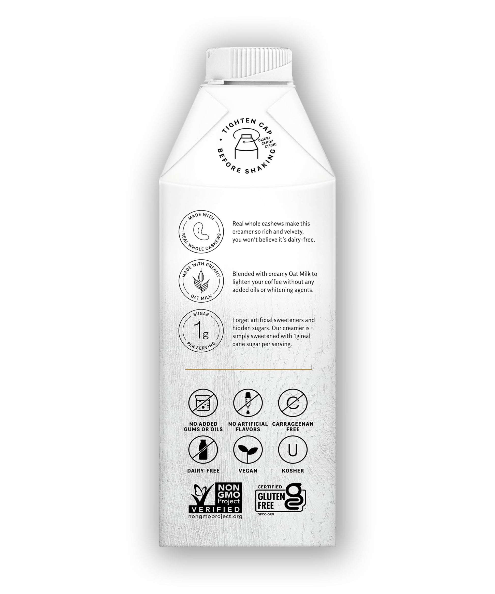 Buttery Cashews, Dreamy Oatmilk And Notes Of Toasted Caramel Make This Plant-Based Creamer Rich & Velvety Without Added Junk. Enjoy In Hot Or Iced Coffee - With Just 1G Sugar And 15 Calories Per Serving, You Can Feel Good About Every Sip!