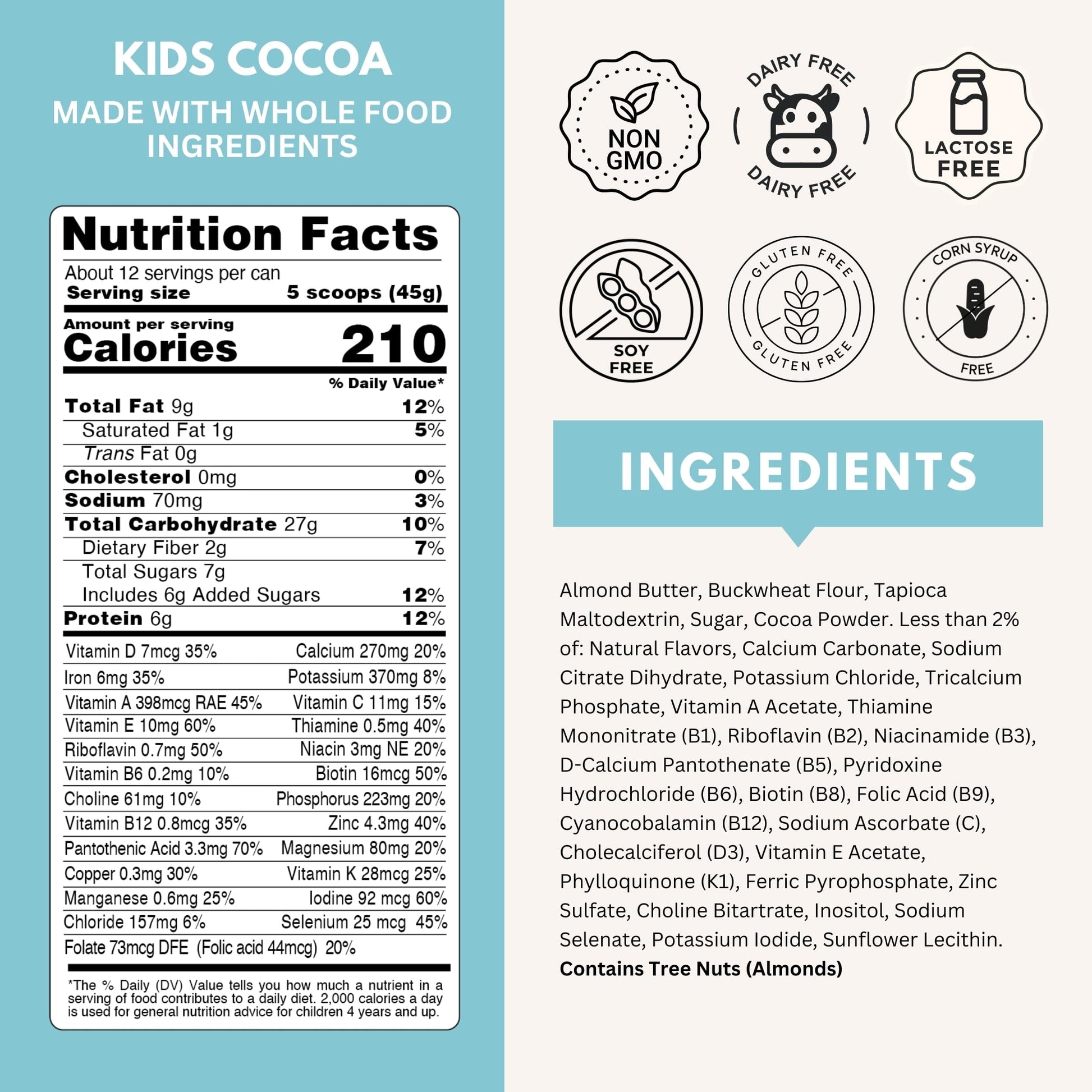 Introducing our Plant-Based Kids Protein Shake Powder - made with real whole foods and specifically formulated for ages 2 to 12. This exceptional product is crafted to provide your child with the essential nutrients they need for optimal growth and development. As the best protein powder for kids, our formula is designed to support the nutritional needs of young, growing bodies with ease and efficacy. If youre looking a for a great way to get protein kids will love, get our kids vegan protein shake. Our protein powder for kids stands out as a superior choice for parents seeking a wholesome, organic nutrient powder shake. Each serving of this kids protein powder delivers a powerful blend of plant-based protein and 25 essential vitamins and minerals, ensuring comprehensive nutrition. The dairy-free composition makes it ideal for children with lactose intolerance or those following a vegan diet. Thus, this vegan protein powder is a versatile addition to any dietary regimen. Our Kids Protein Shake supports weight gain for kids in a healthy manner, promoting balanced growth and development. Crafted with care, our kids chocolate protein powder transforms into a delightful kids chocolate protein shake, a perfect treat that doubles as a nutritious kids snack. The delicious chocolate flavor is sure to be a hit, making nutrition enjoyable for your little ones. Our kids growth protein shake is an excellent choice for active children, or picky eaters, providing them with the energy needed for daily activities. As an organic kids protein shake, it ensures that your child receives only the best, free from artificial additives. The inclusion of healthy chocolate milk powder for kids enhances the taste while maintaining nutritional integrity. Parents can trust our kids nutrition shake to deliver consistent quality and results. This protein shake for kids is a must-have in every household, offering peace of mind that your child is receiving complete nutrition. The protein powder for kids is easy to prepare, making it a convenient option for busy mornings or after-school snacks. Choose our Plant-Based Kids Protein Shake Powder for a reliable, nutritious solution that supports healthy development and growth in children. With this kids protein drink, youre making a commitment to quality nutrition for your childs future.