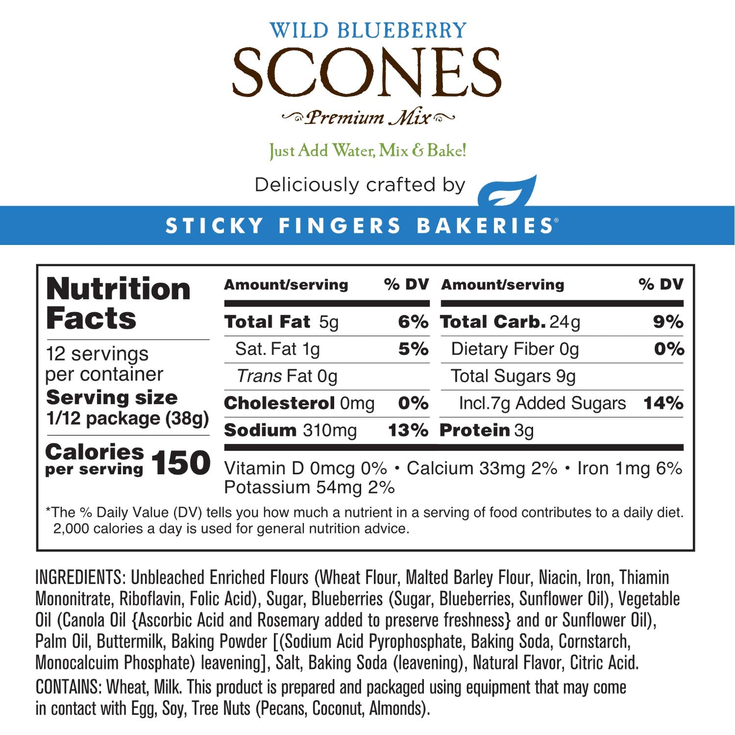 English Scone Mix, Wild Blueberry By Sticky Fingers Bakeries - Easy To Make English Scones Fresh Baked, Makes 12 Scones (1Pk)