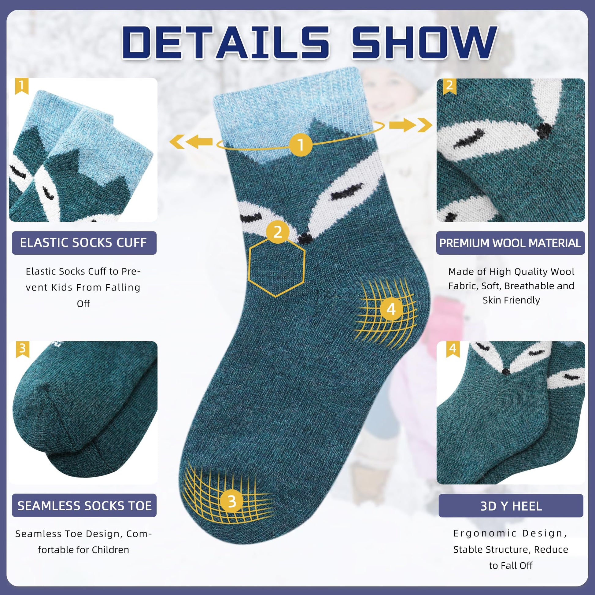 Q: What makes these socks a good gift for children?A: Eocom children's winter wool socks feature cute animal patterns and vibrant colors, making them an excellent gift idea for birthdays, holidays, and special occasions. They combine functionality with fun, ensuring that kids will love wearing them.