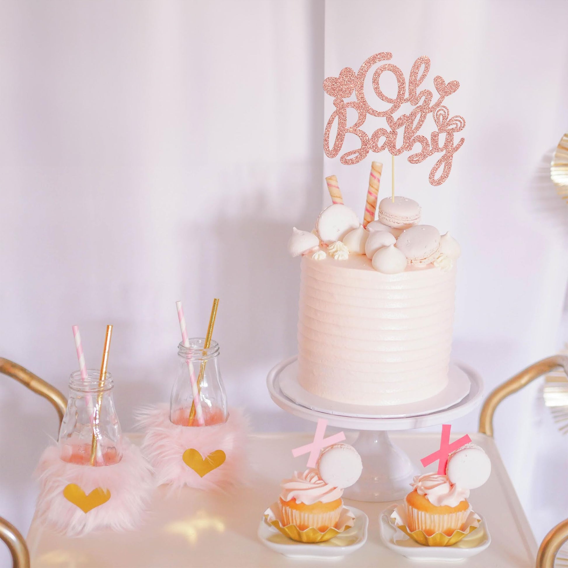 Ephlyn 1Pcs Happy Valentine'S Day Oh Baby Cake Topper Rose Gold Glitter Valentine Babyshower Cake Decorations For Love Valentine