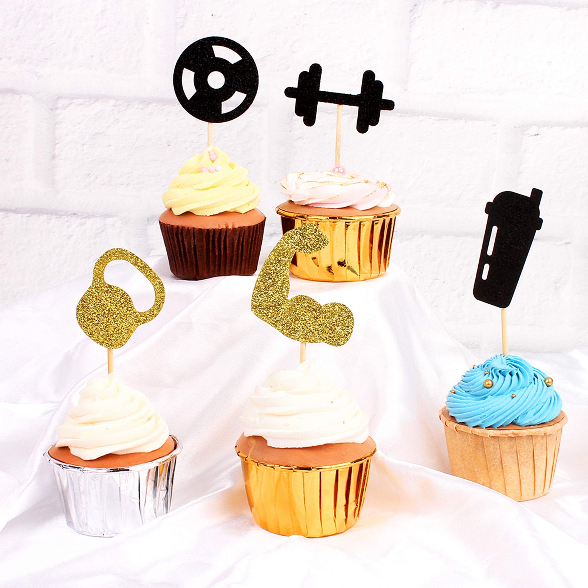 Q: What themes are these cupcake toppers suitable for?A: These cupcake toppers are perfect for gym workout theme parties, fitness-themed events, athlete parties, and bodybuilding birthday celebrations, adding a fun and vibrant touch to your desserts.