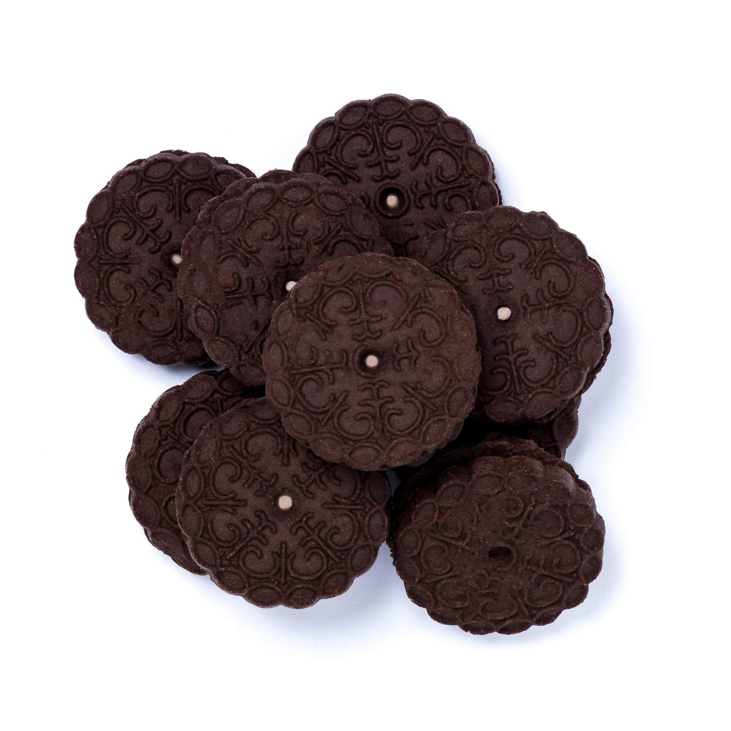 Q: What flavor combination do these cookies offer?A: Exclusively Dog Sandwich Cremes feature a delightful peanut butter and carob flavor combination, making them a tasty and safe option for your pet to enjoy.