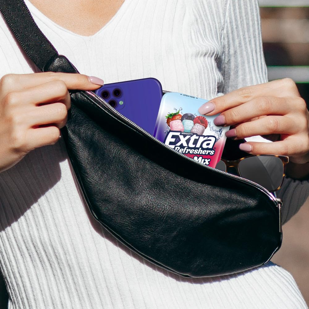 EXTRA Refreshers Berry Mix Gum gives you long lasting flavor for any occasion. Stock up on convenient bottles for the office or for when your party guests need something fresh to get the night started. From first dates to 50th anniversaries, enjoy incredibly fresh breath with this delicious mix of strawberry freeze, raspberry rush and blueberry blast flavors. Chew EXTRA Refreshers Gum for a delicious way to help you stay focused for big tests, or spread the love by sharing a bottle with your study group. This bottle is easy to open and close, so you can save some fruity fun for later. Find crisp, invigorating refreshment from head to toe with EXTRA Refreshers Berry Mix Gum.