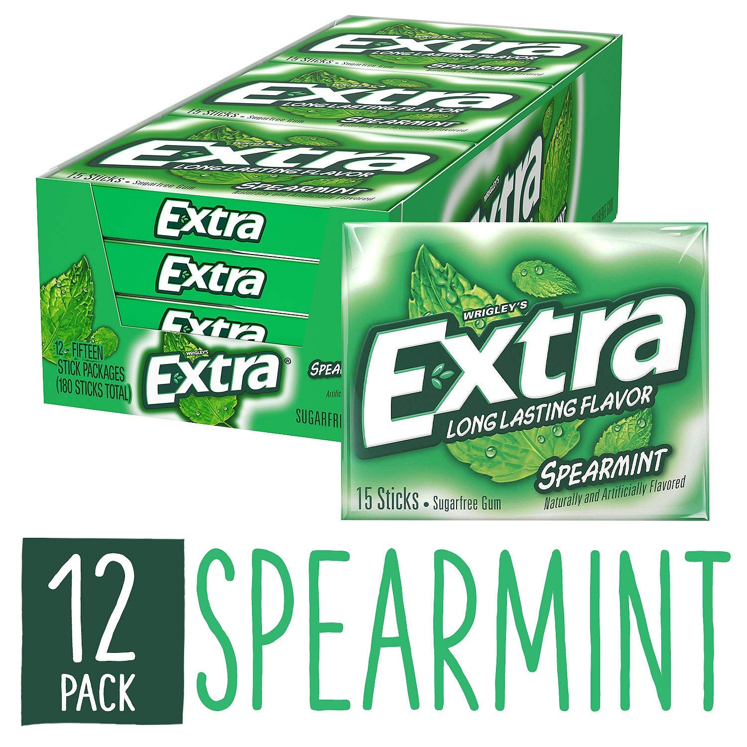 Q: How many pieces are included in one pack of Extra Spearmint Gum?A: Each pack of Extra Spearmint Sugar-Free Gum contains 12 pieces, and with 15 counts available, you'll have a total of 180 pieces to enjoy or share.