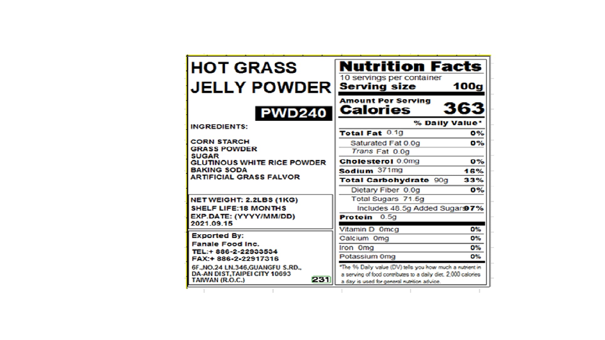Q: Does this flavoring powder contain sugar and creamer?A: Yes, the Fanale Grass Jelly powder is a 3 in 1 mix that already includes both creamer and sugar, making it convenient for preparing delicious bubble tea or other drinks without needing to add extra ingredients.