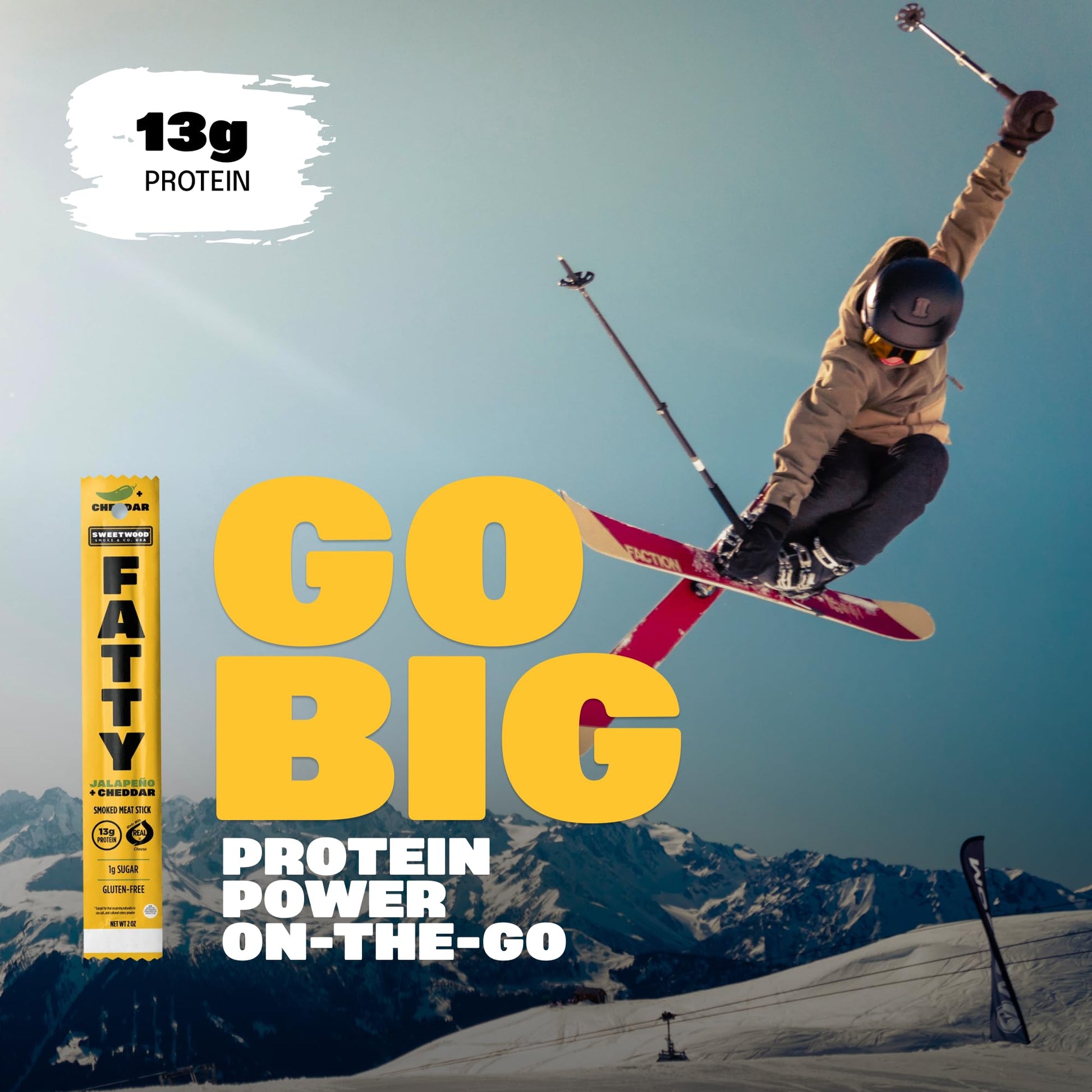 - Q: How do FATTY meat sticks compare to traditional jerky? A: FATTY meat sticks are made with grass-fed beef and contain no artificial ingredients, making them a cleaner alternative to traditional jerky.