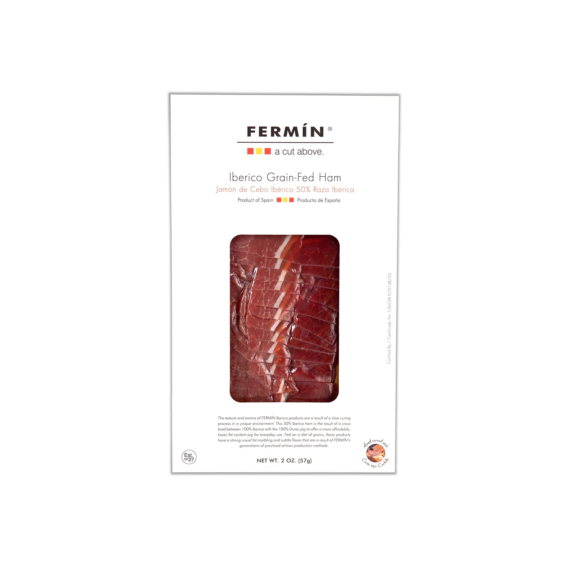 Q: How is Fermin's Jamon Iberico sliced and packaged?A: Fermin's Jamon Iberico is expertly sliced into thin portions, ensuring a melt-in-your-mouth experience. It comes in two vacuum-sealed packs of 2 oz each, maintaining freshness and making it easy to serve.