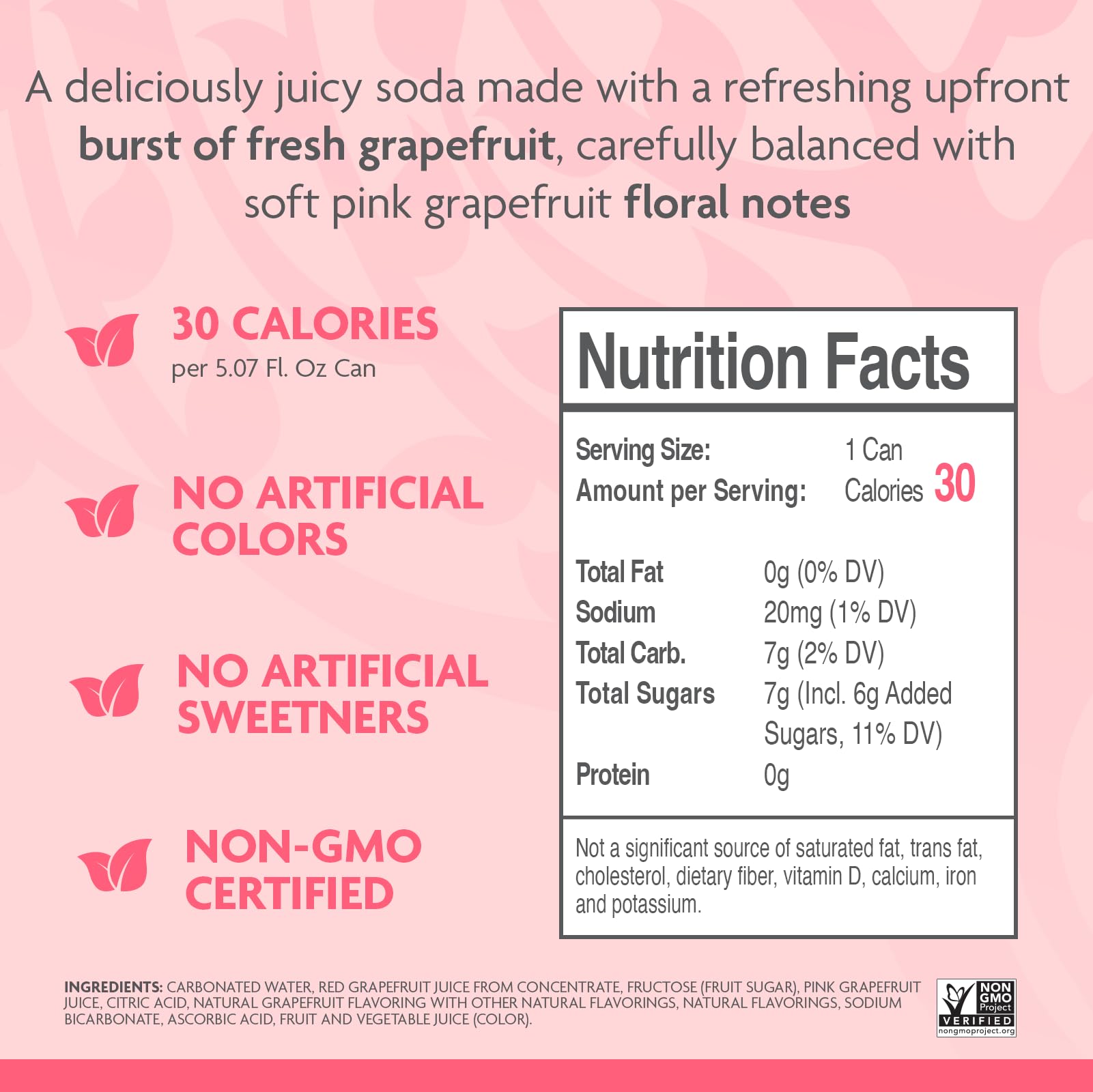NATURALLY SOURCED: Enjoy a beverage free from artificial sweeteners, flavorings, or preservatives. Our Sparkling Pink Grapefruit showcases the best of Florida's natural ingredients.