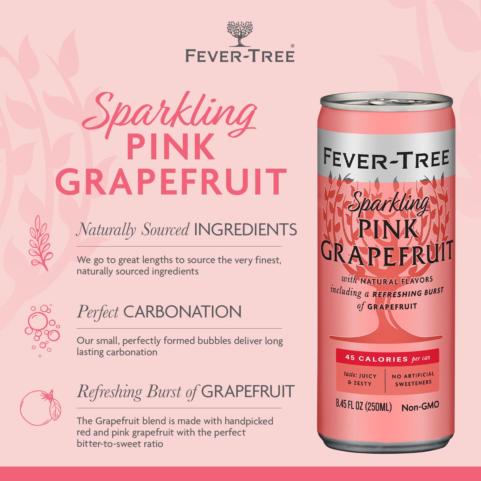 Fever-Tree Sparkling Pink Grapefruit is a delicious soda made with a refreshing upfront burst of fresh grapefruit, carefully balanced with soft pink grapefruit floral notes. The perfect levels of carbonation provide a rounded base which complements the best premium tequilas and vodkas for a refreshing, light spritz. NonGMO certified. Naturally sourced ingredients. No artificial sweeteners or colors.