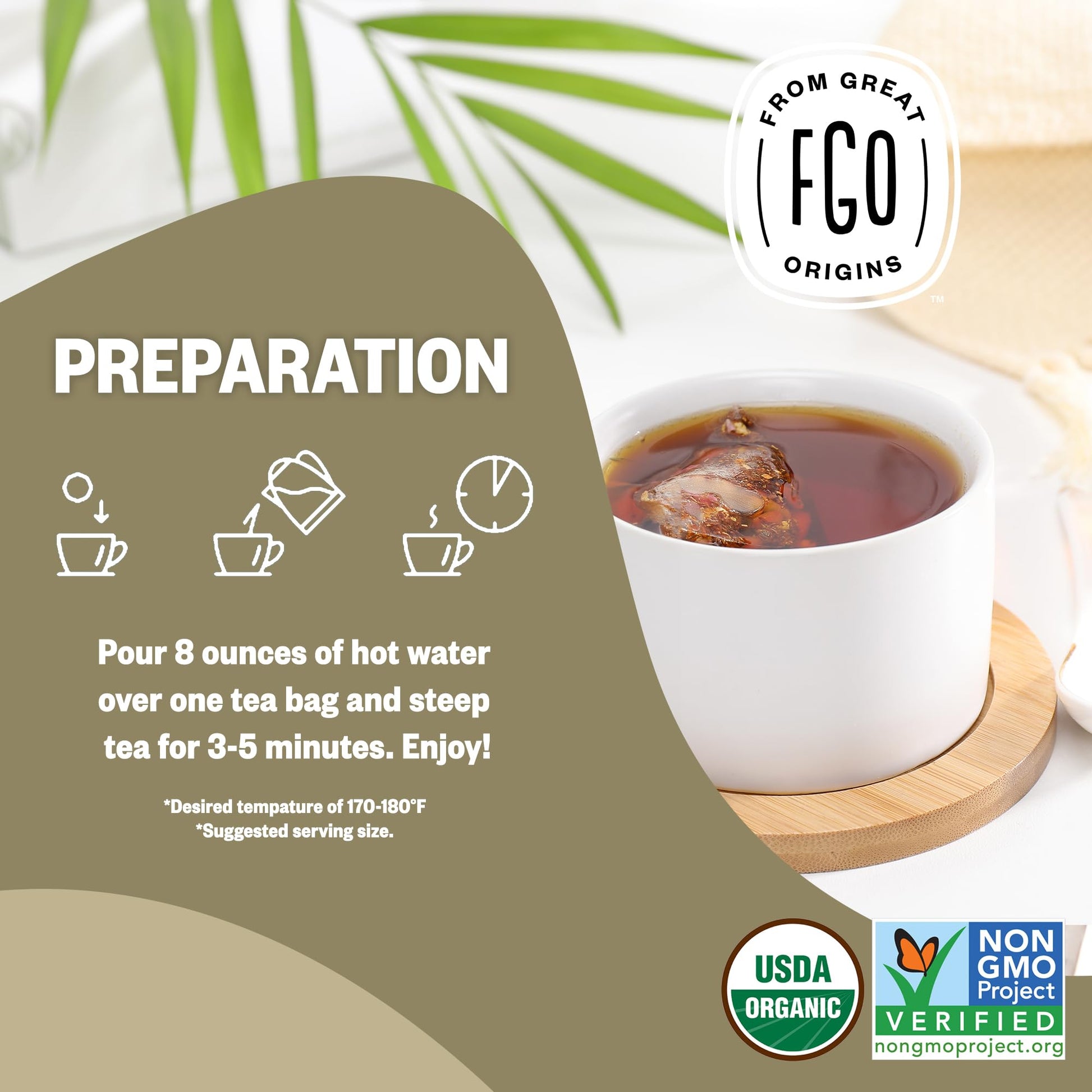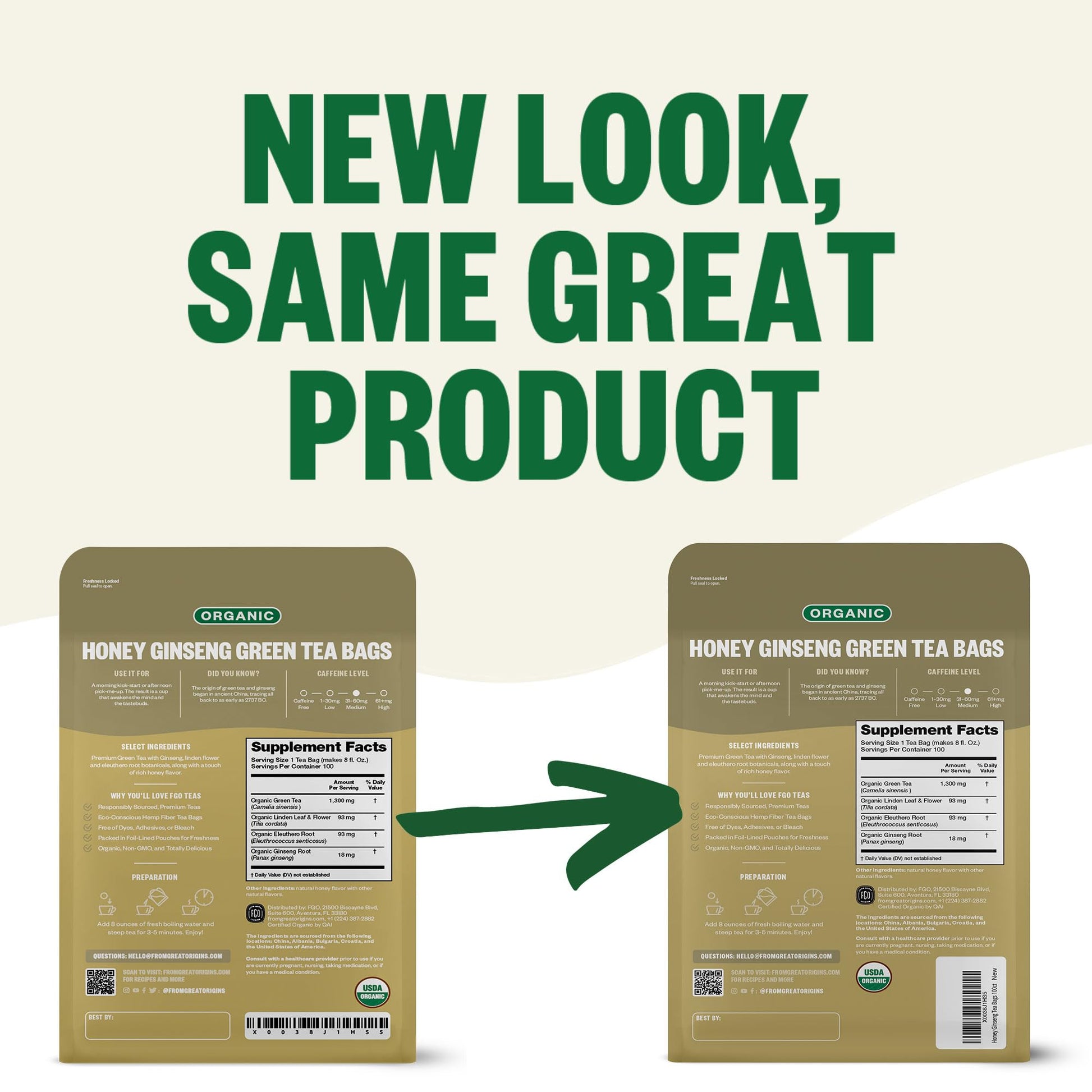 Q: What is the packaging for FGO Organic Honey Ginseng Green Tea?A: FGO Organic Honey Ginseng Green Tea comes in eco-conscious tea bags, with packaging that may vary, reflecting a commitment to sustainability.