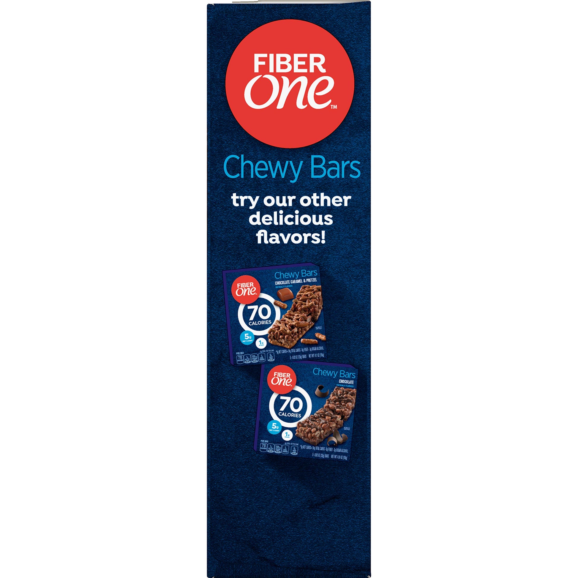 Fiber One 70 Calorie Chewy Snack Bars Provide An Indulgent Snack Without Any Of The Guilt. Rich Chocolate Peanut Butter And Hearty Oats Help Satisfy Your Cravings Without Sacrificing Your Healthy Lifestyle. Each Fiber Bar Contains At Least 20% Daily Value Of Fiber So You'Ll Feel Like One Smart Cookie When You Say 'Yes' To Your Sweet Tooth. Diets High In Fiber Can Help Keep Your Digestive System On Track. Choose Fiber One Chewy Granola Bars For Your Breakfast Bars, Office Snacks Or As An On-The-Go Treat. Contains 70 Calories, Five Grams Net Carbs, And One Gram Sugar Per Serving For A Snack To Keep You Going. Contains Five Bars Total.