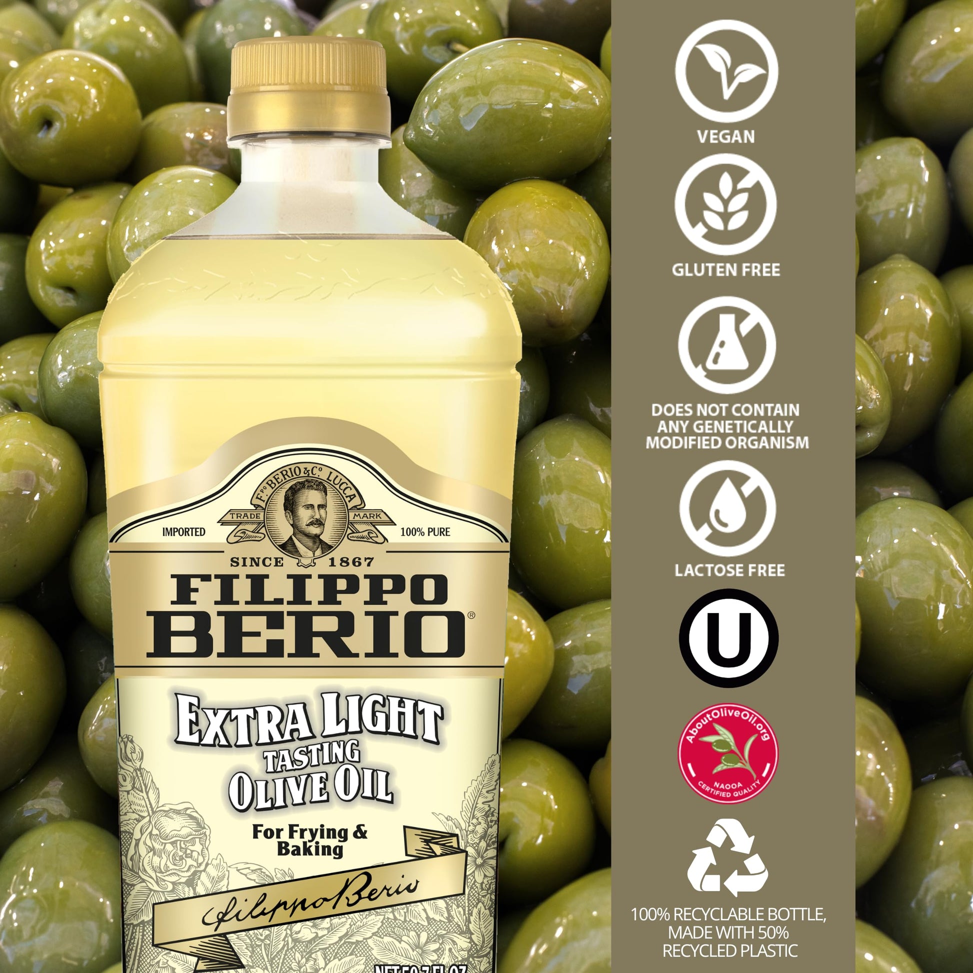 - Q: What makes Filippo Berio Extra Light Olive Oil a healthier choice? A: This olive oil contains important nutrients, good unsaturated fats, and antioxidants while being free from gluten, GMOs, sugar, and sodium. It is also Kosher Certified, making it a healthy option for various dietary needs.