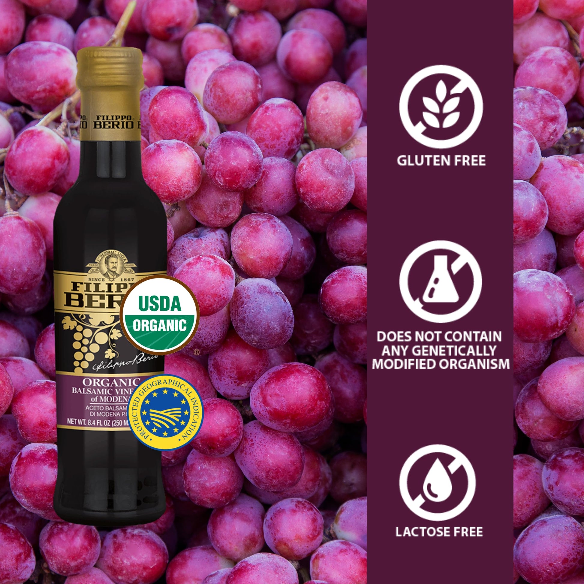 - Q: Is Filippo Berio Organic Balsamic Vinegar gluten-free? A: Yes, Filippo Berio Organic Balsamic Vinegar is gluten-free, making it a great choice for those with gluten sensitivities or dietary restrictions.