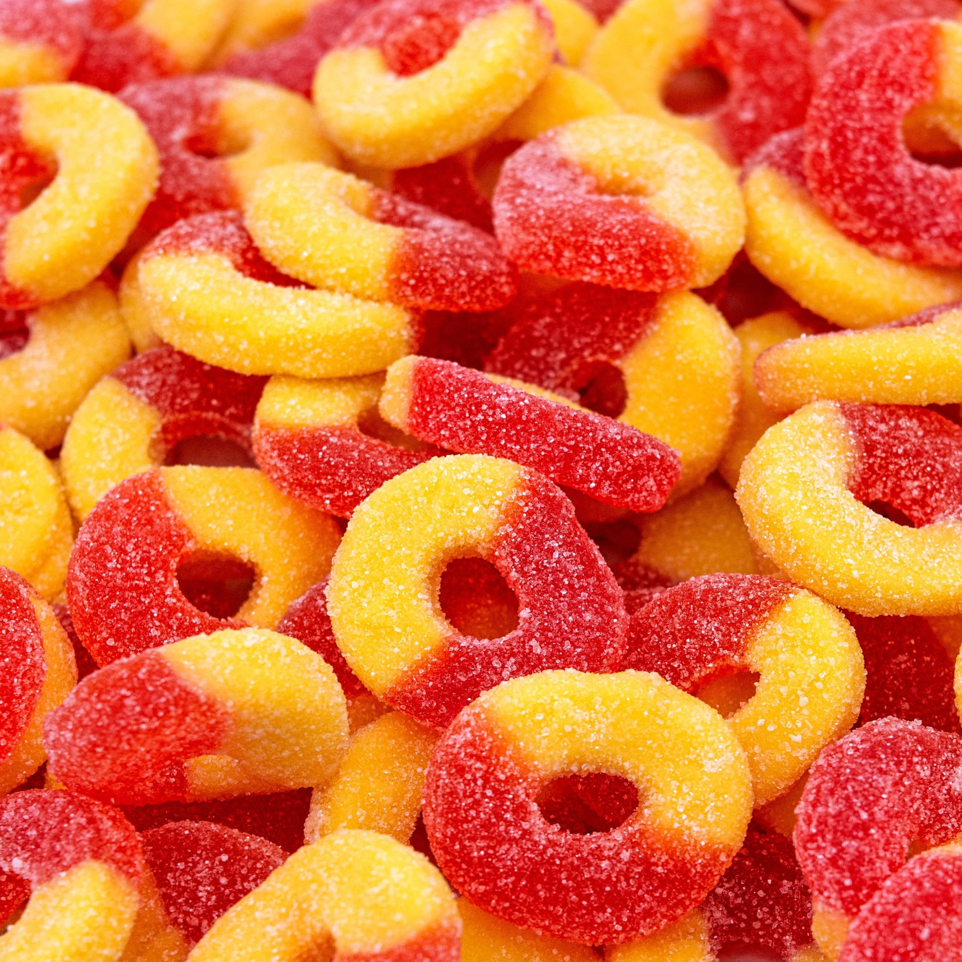 - Q: What are FirstChoiceCandy Gummi Rings made of? A: FirstChoiceCandy Gummi Rings are made from high-quality ingredients designed to deliver a chewy and flavorful experience. While specific material details are not disclosed, they are known for their sugary coating and soft center, providing a delightful taste.